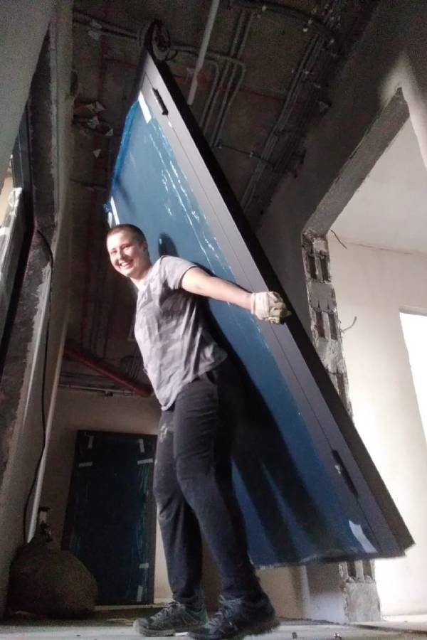 Лена Патяева на работе на стройке Фото: личный архив Лены Патяевой Работать на стройке девушку вдохновила знакомая — промышленная альпинистка. Но самой Лене эта профессия не подошла: высота пугала. На стройке она попробовала себя в разных ролях — работала, например, кровельщицей, то есть ремонтировала крыши. В итоге Лена стала монтажницей железных дверей. Получила работу в Санкт-Петербурге и осталась там: город вдохновлял, жилье было дешевле, чем в Москве.