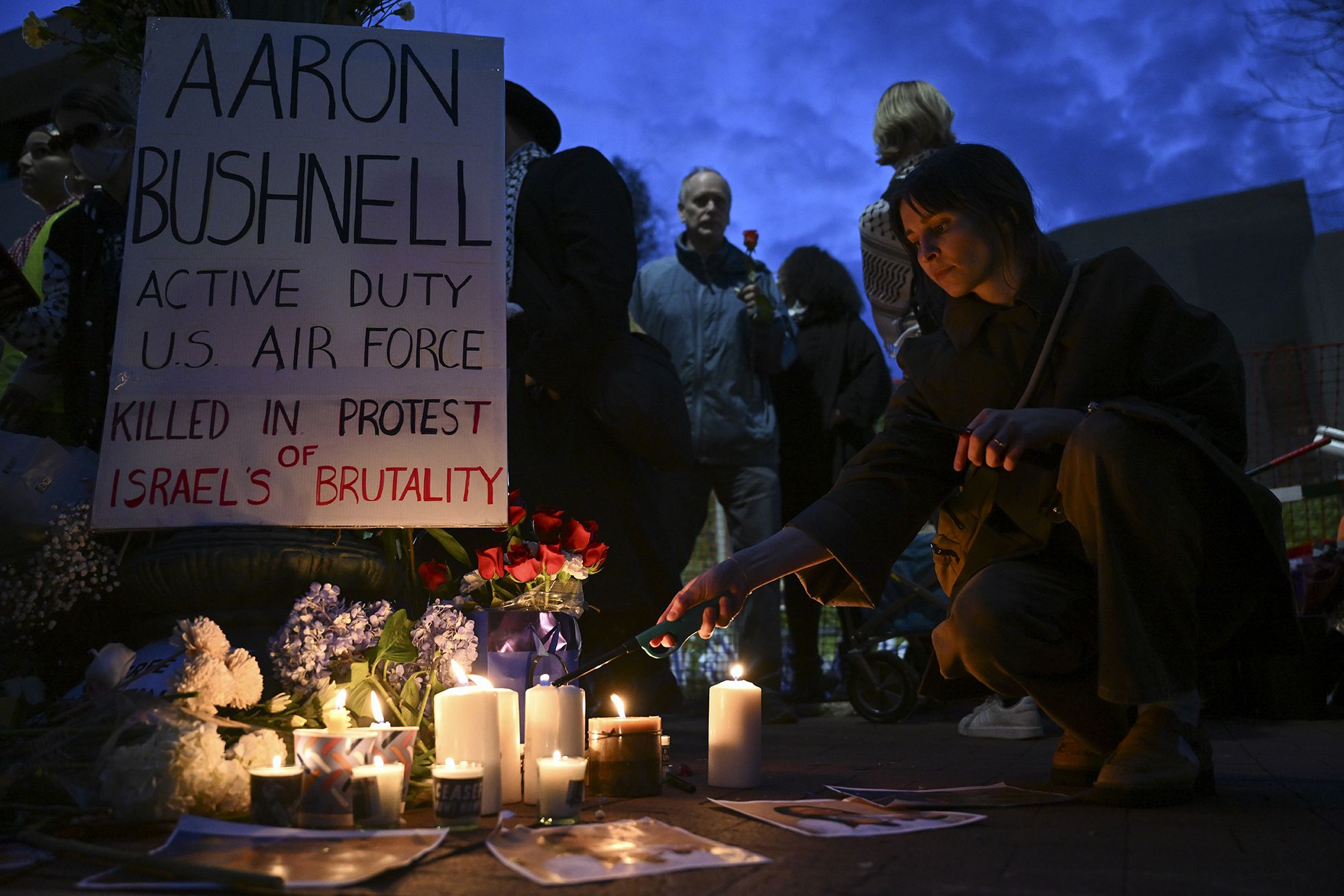 Вечером 25 февраля 25-летний военнослужащий военно-воздушных сил США Аарон Бушнелл, одетый в форму ВВС, пришел к посольству Израиля в Вашингтоне, облил себя легковоспламеняющейся жидкостью и поджег с криком «Свободу Палестине!» Самосожжение он транслировал на платформе Twitch (позже это видео было удалено). Перед тем, как поджечь себя, Бушнелл заявил, что «больше не будет участвовать в геноциде».