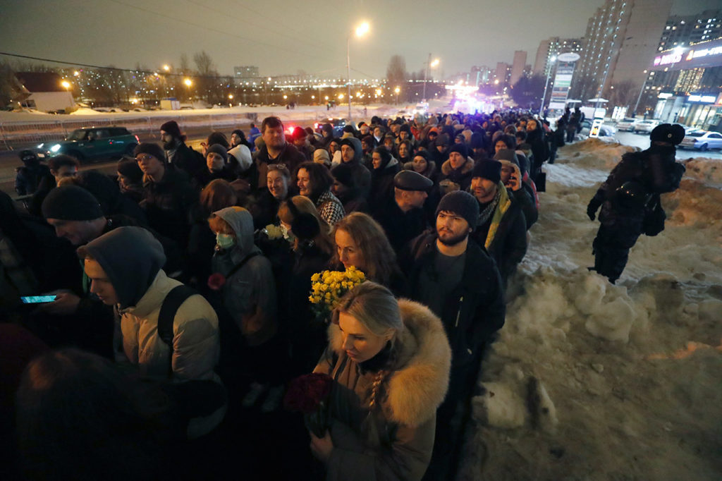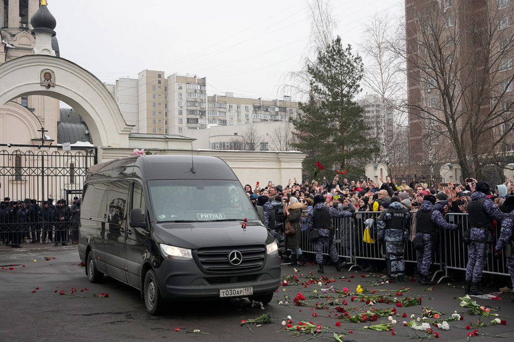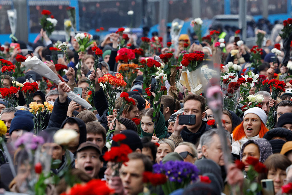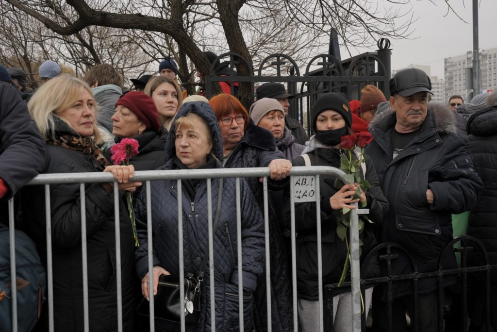В Москве 1 марта простились с Алексеем Навальным. Его похоронили на Борисовском кладбище на Юге города. Попрощаться с погибшим в колонии политиком пришли тысячи россиян. Процессия от храма, где отпевали Навального, до кладбища растянулась на полтора километра. Как это было — в фоторепортаже «Холода».