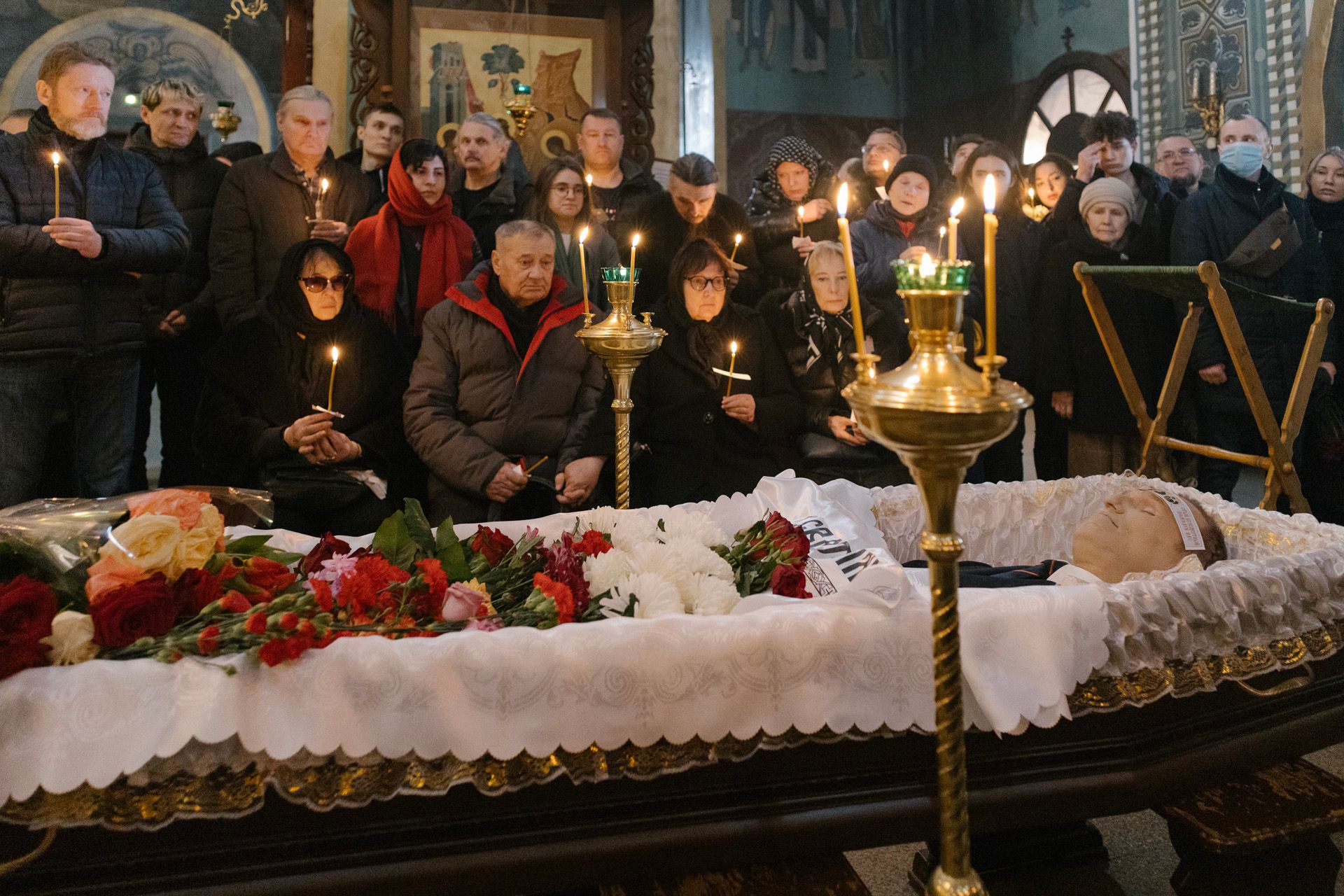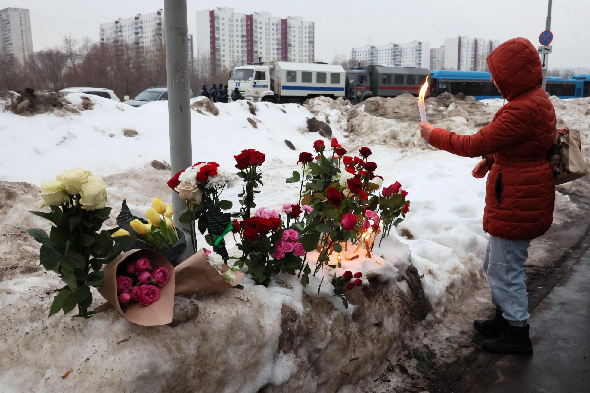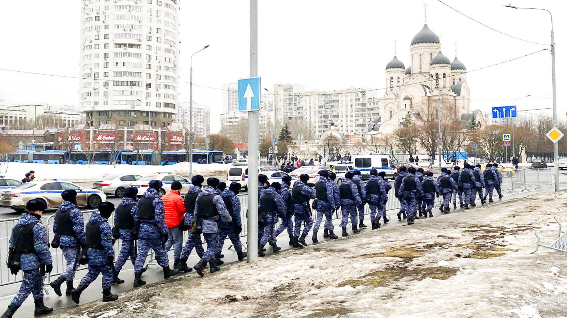 «Медуза» С раннего утра у храма «Утоли моя печали» в Марьино начали собираться полицейские и сотрудники Росгвардии. Сколько именно — неизвестно, но судя по фото и видеозаписям в соцсетях, сотни человекГеоргий Гузовский / «Медуза»Александр Неменов / AFP / Scanpix / LETA Территорию от метро «Марьино» до церкви (расстояние между ними — примерно 200 метров) оцепили металлическими ограждениями«Медуза»«Медуза»Telegram-канал Varlamov news В считаные минуты к храму выстроилась огромная очередь. По оценкам работавших на месте журналистов, проститься с Навальным пришли тысячи человек«Медуза» Гроб с телом Алексея Навального. Рядом сидят родители Алексея и мама Юлии НавальнойReuters / Scanpix / LETA«Медуза»Александр Неменов / AFP / Scanpix / LETA Гроб с телом Навального выносят из храма после отпевания, которое продлилось всего около 20 минутАлександр Неменов / AFP / Scanpix / LETA«Медуза»AP / Scanpix / LETA Люди, пришедшие проститься с Навальным, скандировали «Спасибо, Алексей!», а также лозунги «Любовь сильнее страха» и «Путин убийца»AP / Scanpix / LETAReuters / Scanpix / LETA Толпа направляется на Борисовское кладбище. Утром в сети появилась фотография с объявлением о том, что сегодня кладбище закрыто для посещений. Сотрудники кладбища опровергли эту информацию. Оно действительно работало, с 9:00 до 17:00Reuters / Scanpix / LETAReuters / Scanpix / LETAОльга Мальцева / AFP / Scanpix / LETA Людмила и Анатолий Навальные и другие близкие политика у его могилы. На крыше многоэтажного дома на заднем плане видны полицейскиеAFP / Scanpix / LETAAFP / Scanpix / LETAAP / Scanpix / LETAОльга Мальцева / AFP / Scanpix / LETA«Медуза»Георгий Гузовский / «Медуза»«Медуза»