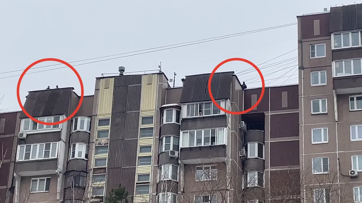 На крышах ближайших к храму зданий находятся люди в балаклавах.