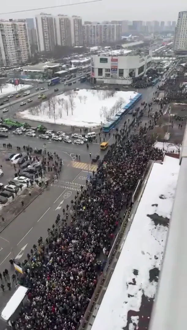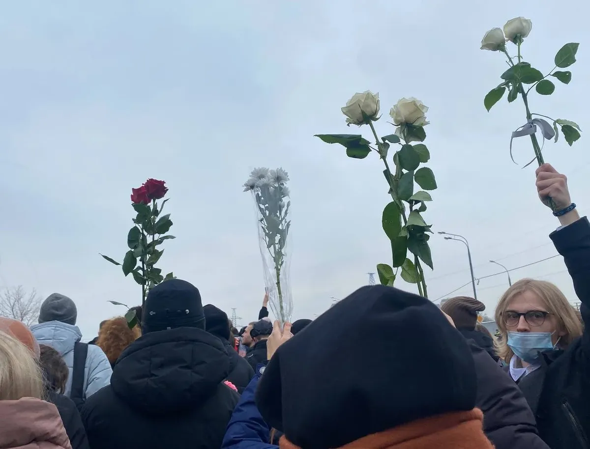 16:30. Людей потихоньку пропускают на кладбище к могиле Алексея Навального. проститься и бросить горсть песка. Очередь к кладбищу — сотни метров, больше тысячи человек.