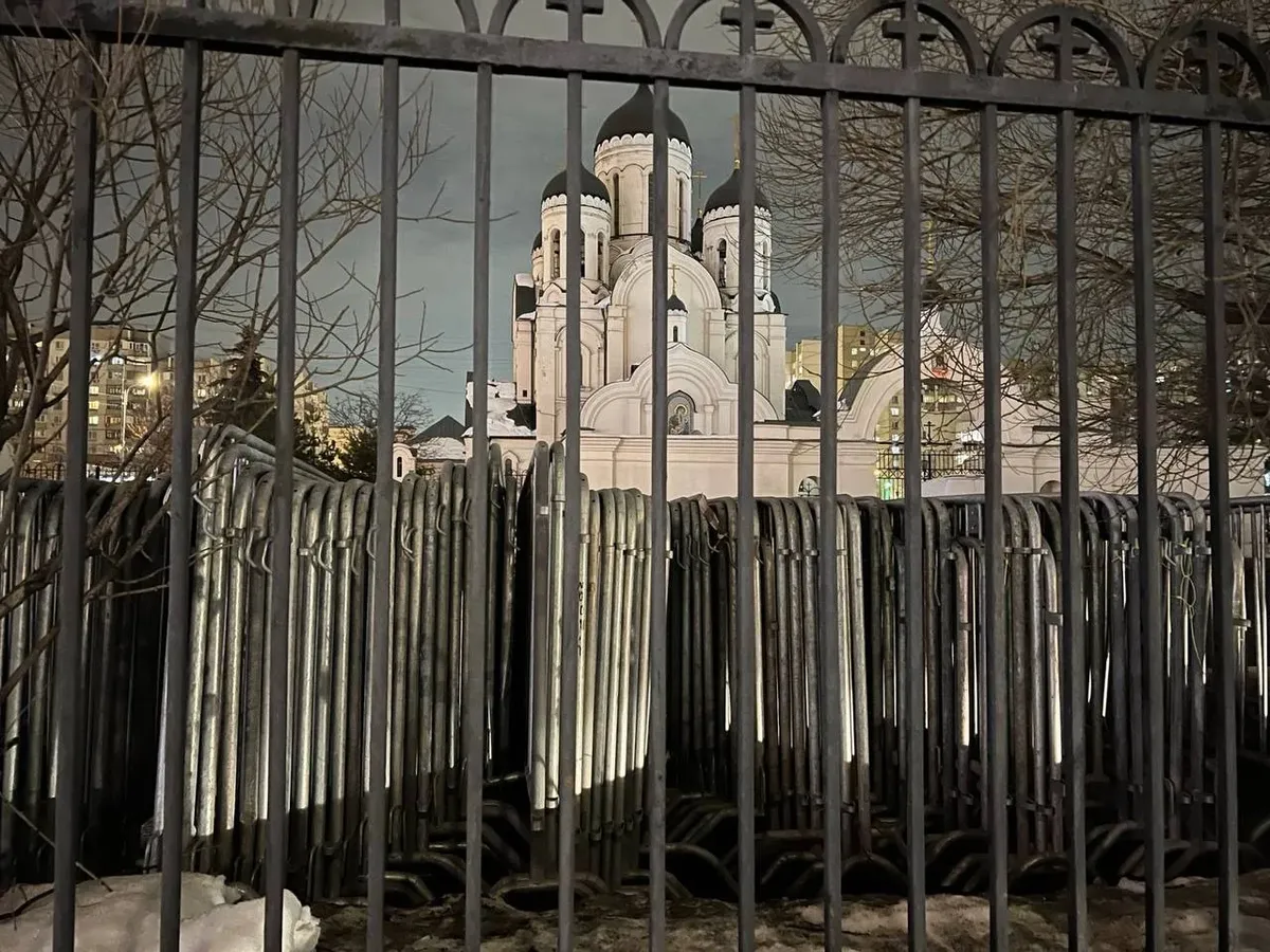 Территория храма и путь к кладбищу с вечера 29 февраля выделен простыми заграждениями, к утру 1 марта вдоль маршрута и у выходов из метро дежурят полицейские, есть автозаки.