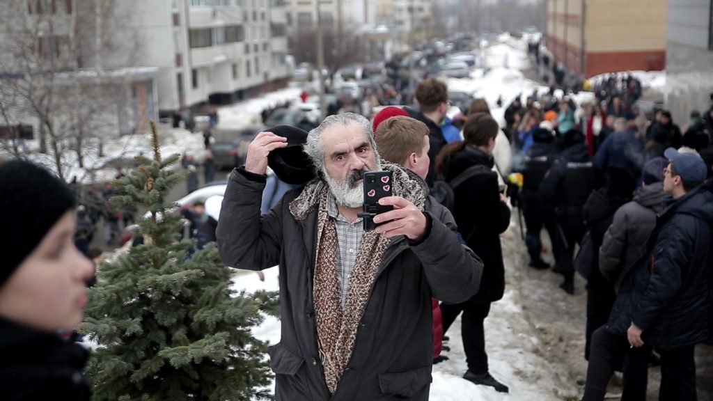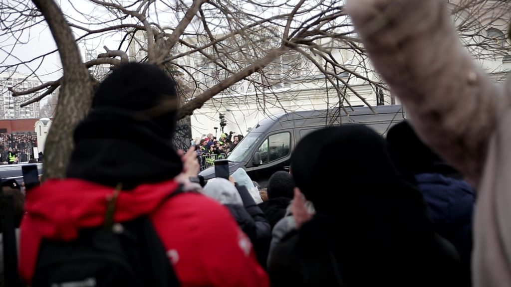 Вокруг снова стали кричать: «Навальный! Навальный!», и девушка «из толпы» прервалась, чтобы присоединиться к скандированию.