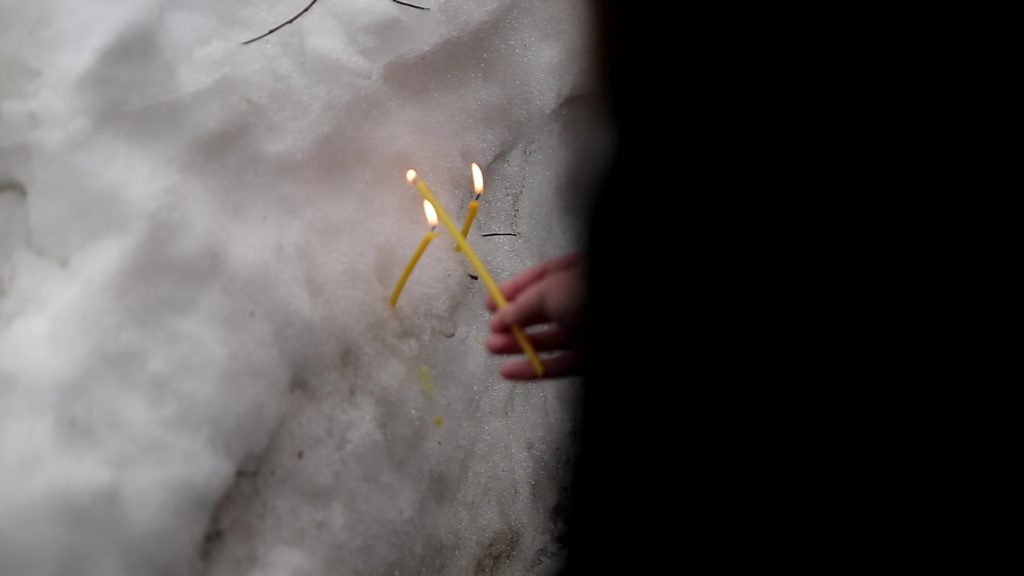 В сквере сделали еще один импровизированный мемориал из снега, тоже обложив его цветами. 20-летняя Ульяна с букетом желтых ромашек в руках на вопрос, почему она сегодня пришла сюда, ответила: