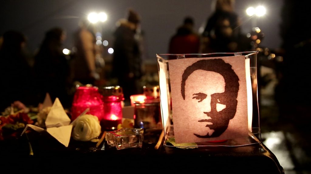 Люди не расходились до глубокой ночи, продолжая стоять в очереди, организовывая стихийные мемориалы, общаясь друг с другом и скандируя политические лозунги: «Мы — это Россия!», «Это не смерть — это убийство!» и «Навальный герой России!».