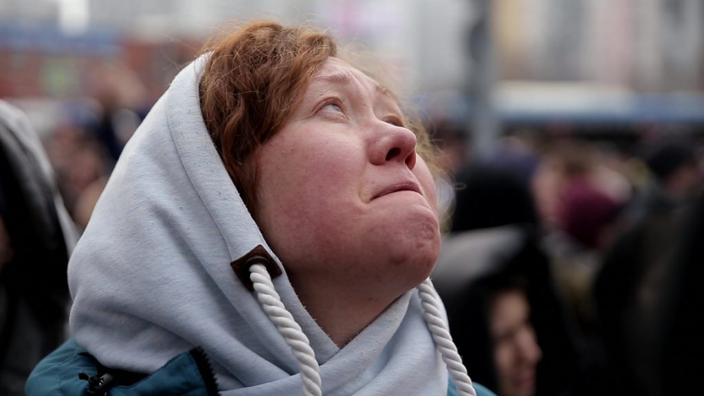 Возле забора храма плакала женщина лет 60, по ее щекам текла тушь. На вопрос, можно ли спросить ее о том, что она чувствует, она ответила: «По мне и так видно, что я чувствую». Людей в слезах было немало — как молодых, так и в возрасте. Но, несмотря на печаль, настроение в толпе было боевое: люди бойко скандировали, как не делали этого в Москве уже несколько лет.
