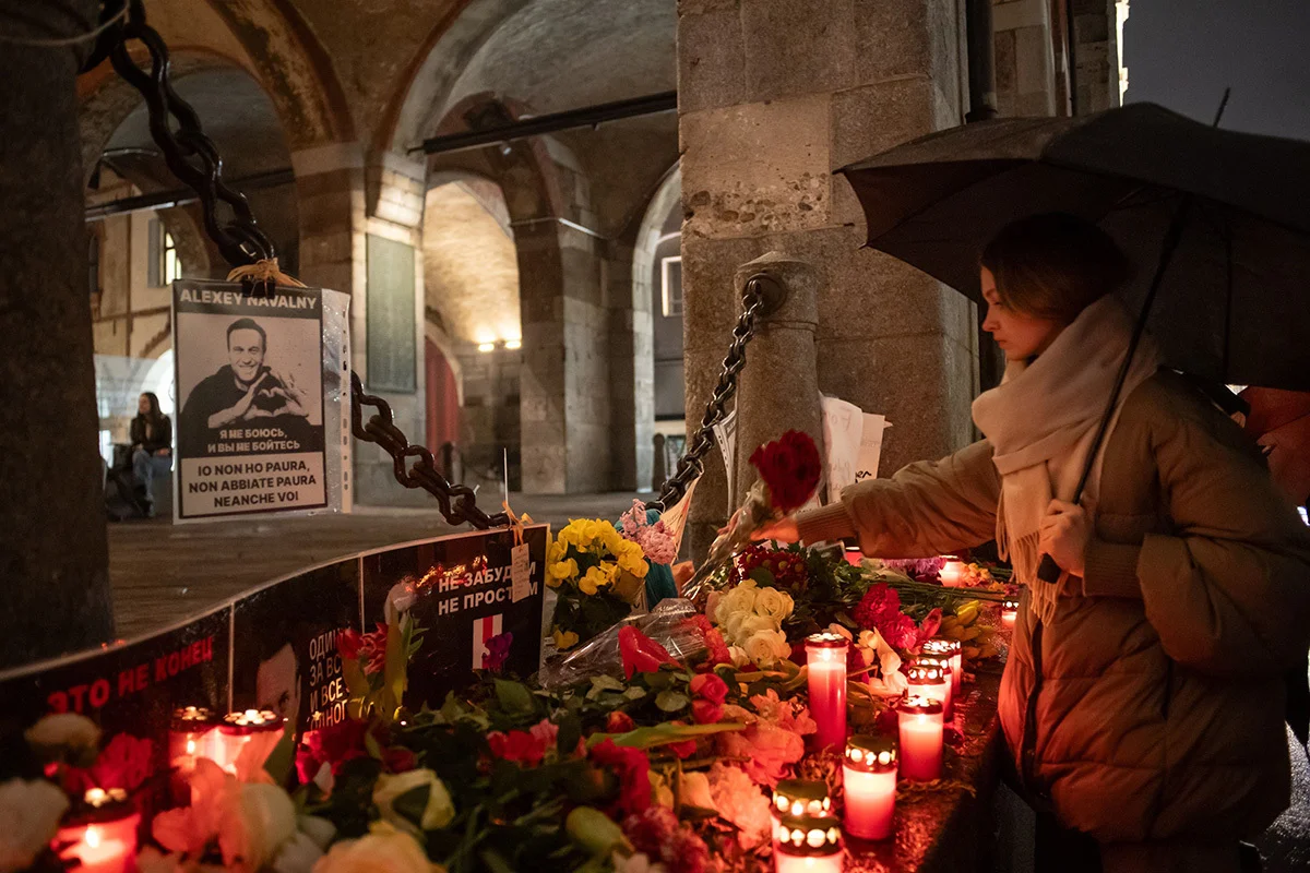 Акция памяти Алексея Навального у российского посольства в Берлине, 1 марта 2024 года. Здесь, как и во многих других городах мира, люди чтили память Навального в день его похорон в Москве. Фото: Filip Singer / EPA-EFEВ Берлине люди зажгли фонарики у российского посольства в память об Алексее Навальном, 1 марта 2024 года. Фото: Filip Singer / EPA-EFEСтихийный мемориал перед зданием посольства России в Лиссабоне, 1 марта 2024. Жители зажигали свечи и приносили цветы. Фото Antonio Cotrim / EPA-EFEВ Праге акция памяти Алексея Навального прошла на площади Бориса Немцова у российского посольства, 1 марта 2024 года. Фото: Martin Divisek / EPA-EFEАкция памяти Алексея Навального в Лиссабоне, 1 марта 2024 года. Политика похоронили в Москве под музыку из «Терминатора 2», поскольку ему очень нравился этот фильм. Фото: Antonio Cotrim / EPA-EFEАкция памяти Алексея Навального в Кракове, 1 марта 2024 года. Фото: Beata Zawrzel / NurPhoto / Getty ImagesАкция памяти Алексея Навального в Барселоне, 1 марта 2024 года. Фото: Marc Asensio Clupes / ZUMA Press / Vida PressАкция памяти Алексея Навального в Барселоне, 1 марта 2024 года. Проститься с политиком пришли люди разных возрастов. Фото: Marc Asensio Clupes / ZUMA Press / Vida PressАкция памяти Алексея Навального на центральной площади Мерканти в Милане, 1 марта 2024 года. Фото: Claudio Furlan / LaPresse / Shutterstock / Vida PressАкция памяти Алексея Навального в Хельсинки перед российским посольством, 1 марта 2024 года. Люди приносили плакаты, в том числе антивоенные. Фото: Miko Stig / Lehtikuva / Sipa USA / Vida PressСтихийный мемориал памяти Алексея Навального у посольства России в Берлине, 1 марта 2024 года. Фото: Filip Singer / EPA-EFE