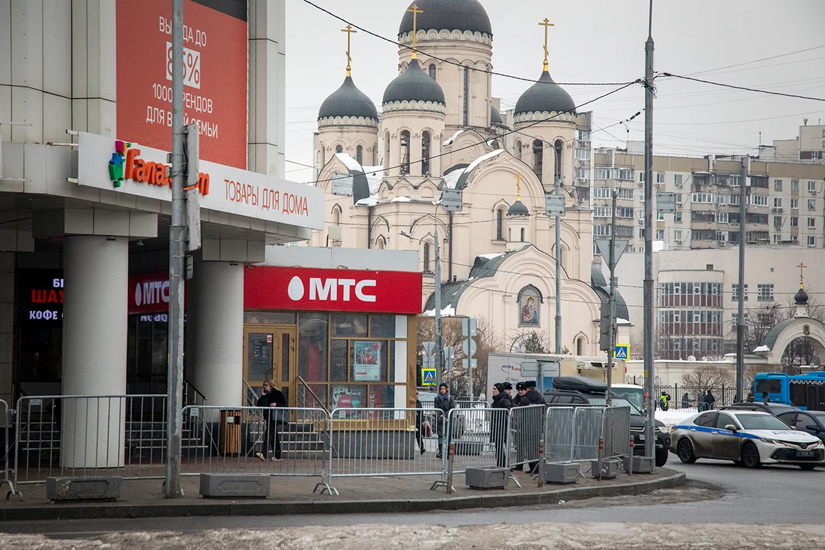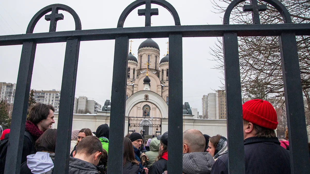 Люди, пришедшие проститься с Алексеем Навальным, у храма «Утоли моя печали». Фото: Дмитрий Цыганов