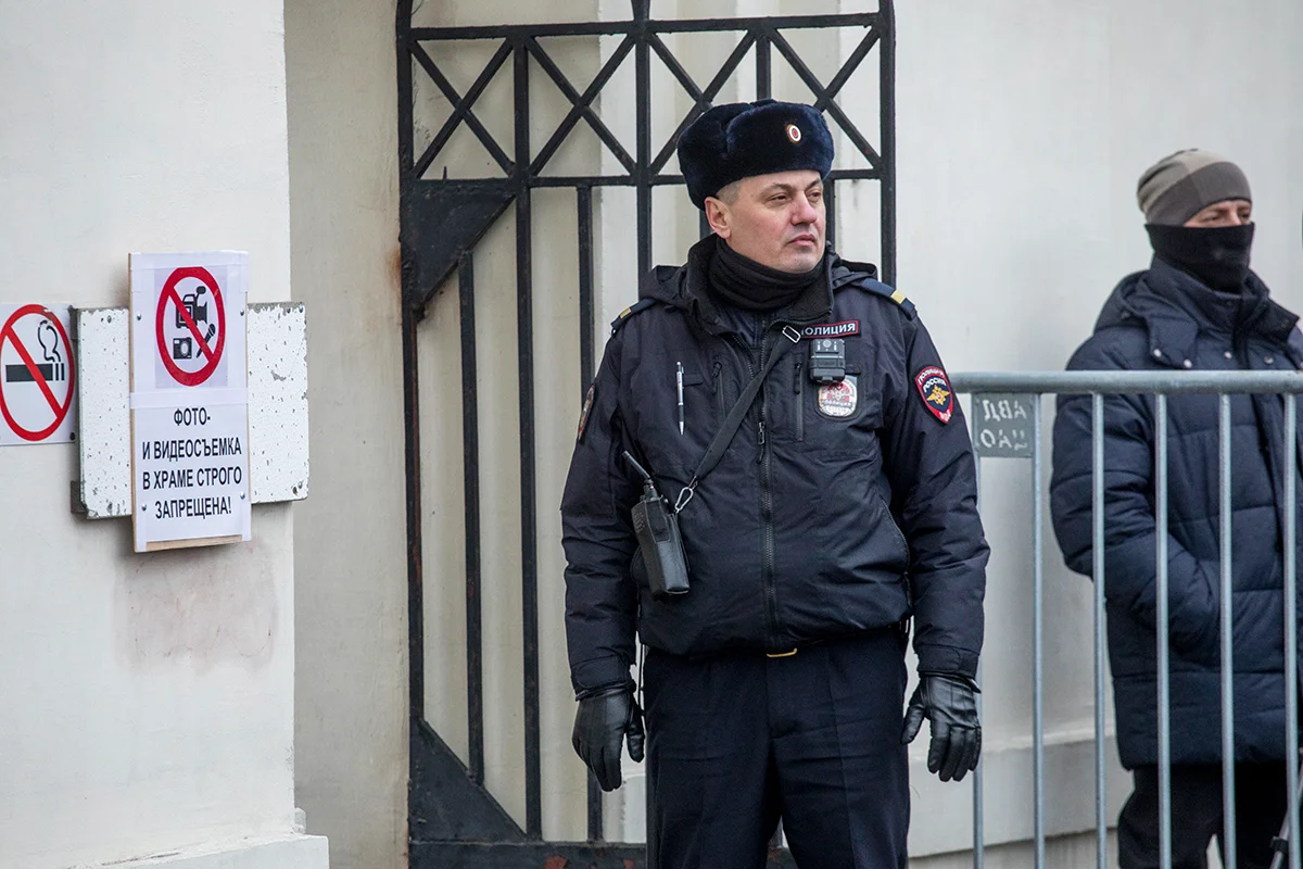 «Был приказ из патриархии сократить всё по максимуму», — сообщил в соцсетях бывший редактор «Журнала Московской патриархии» Сергей Чапнин. А священник Андрей Малевич, служащий в марьинском храме 15 лет, в ответ на вопрос корреспондентки «Новой газеты» Зои Световой признался, что Навального не помнит, хотя тот посещал этот храм и крестил в нем своего сына Захара. «Людей много приходит, и я всех не запоминаю», — дежурно отмахнулся дежурный священник. По окончании экспресс-панихиды он не сказал ни слова в утешение родственникам, лишь предложив им попрощаться с покойным. Но когда попытались подойти попрощаться другие молящиеся (в храм просочились около 200 человек), их грубо оттолкнули крепкие парни, одетые в форму ритуального агентства, и гроб накрыли крышкой. Малевич с кадилом проводил его до катафалка, ни разу не посмотрев в сторону людей, скопившихся за оградой храма, и не покадив над ними, как положено по церковному уставу.