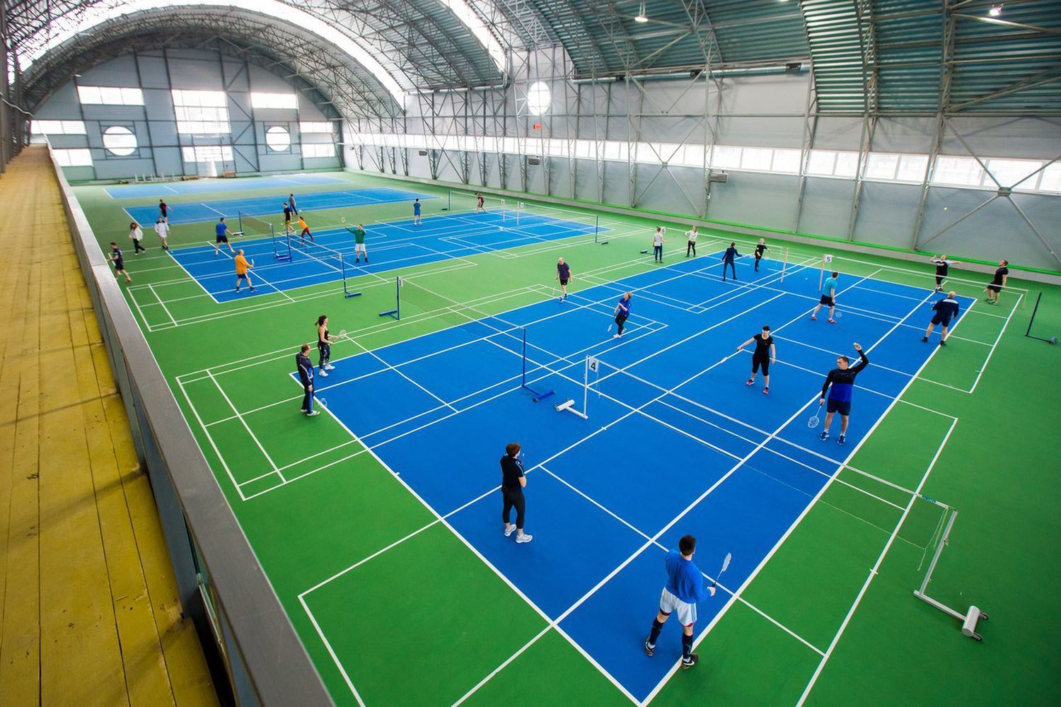 Это многофункциональный зал, в котором можно играть в баскетбол, футбол и волейбол. Для игры в бадминтон нужно арендовать шестую часть арены: стоимость зависит от дня недели и времени суток.