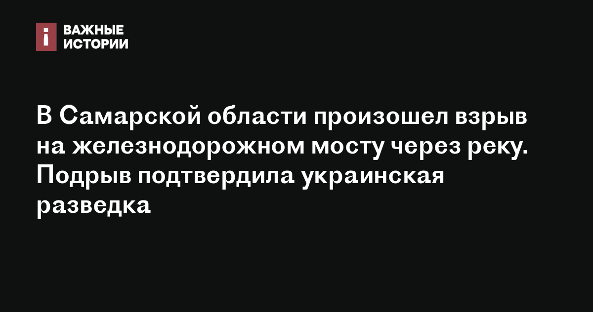 В Самарской области произошел взрыв на железнодорожном мосту через реку. Подрыв подтвердила украинская разведка