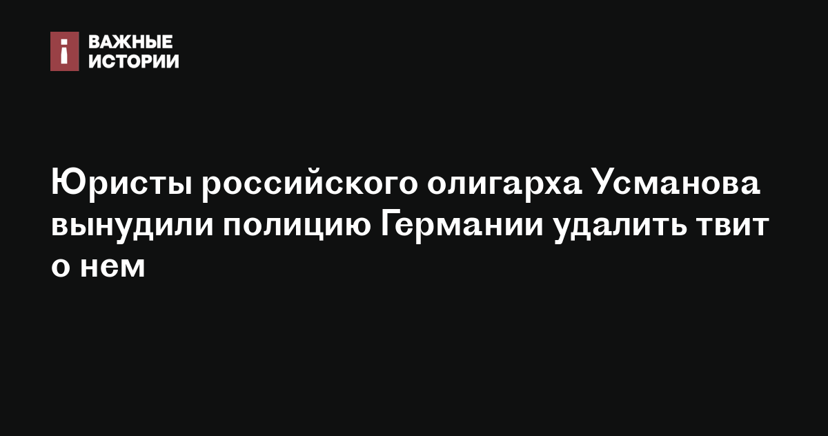 Юристы российского олигарха Усманова вынудили полицию Германии удалить твит о нем