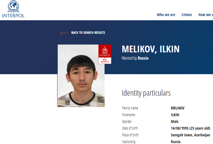 Карточка розыска Илькина Меликова на сайте Интерпола / «Вот Так»