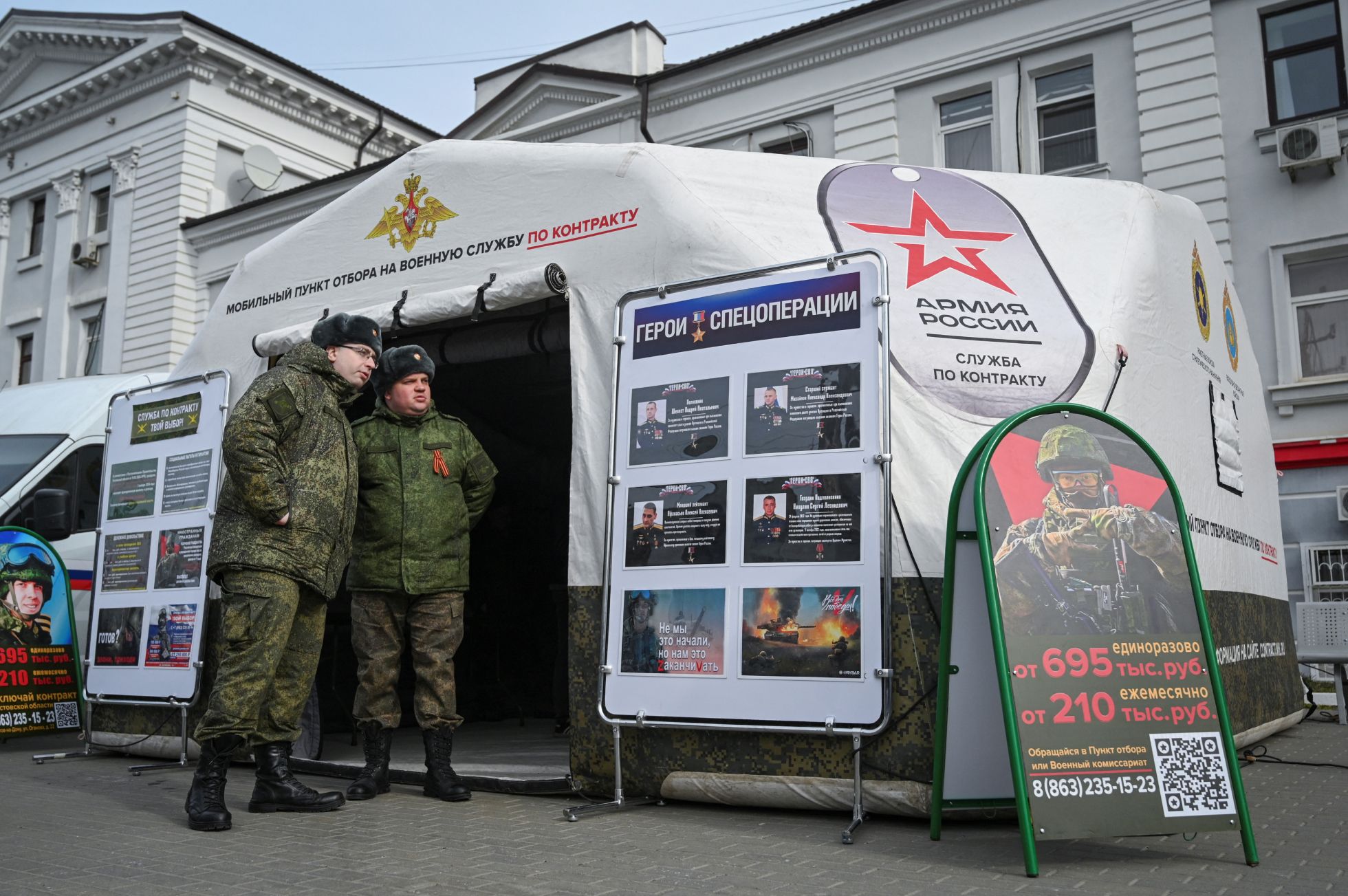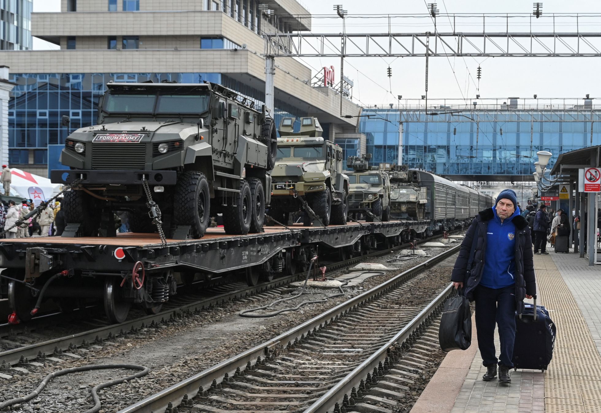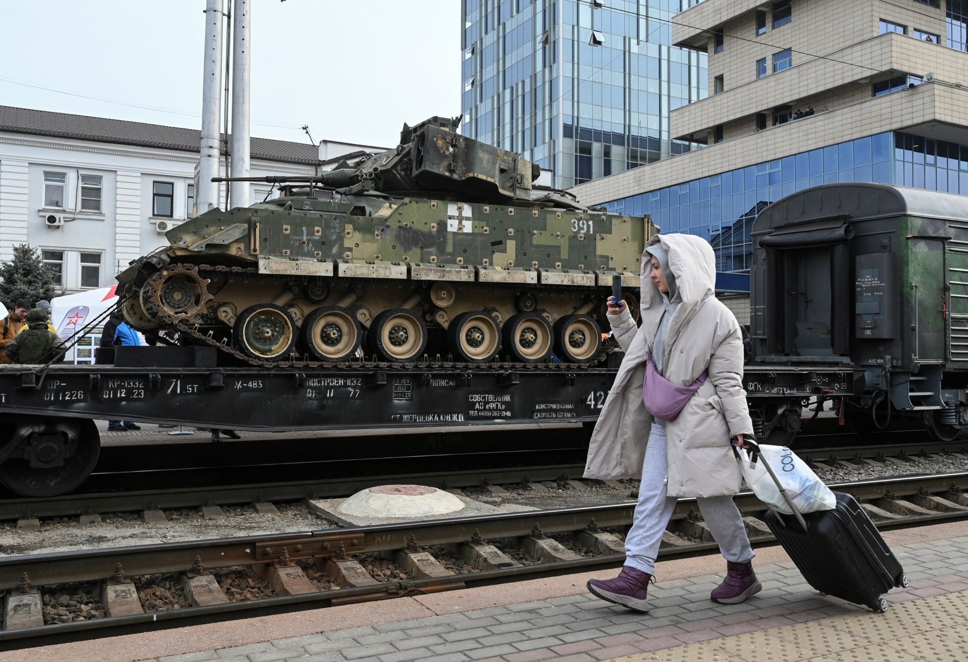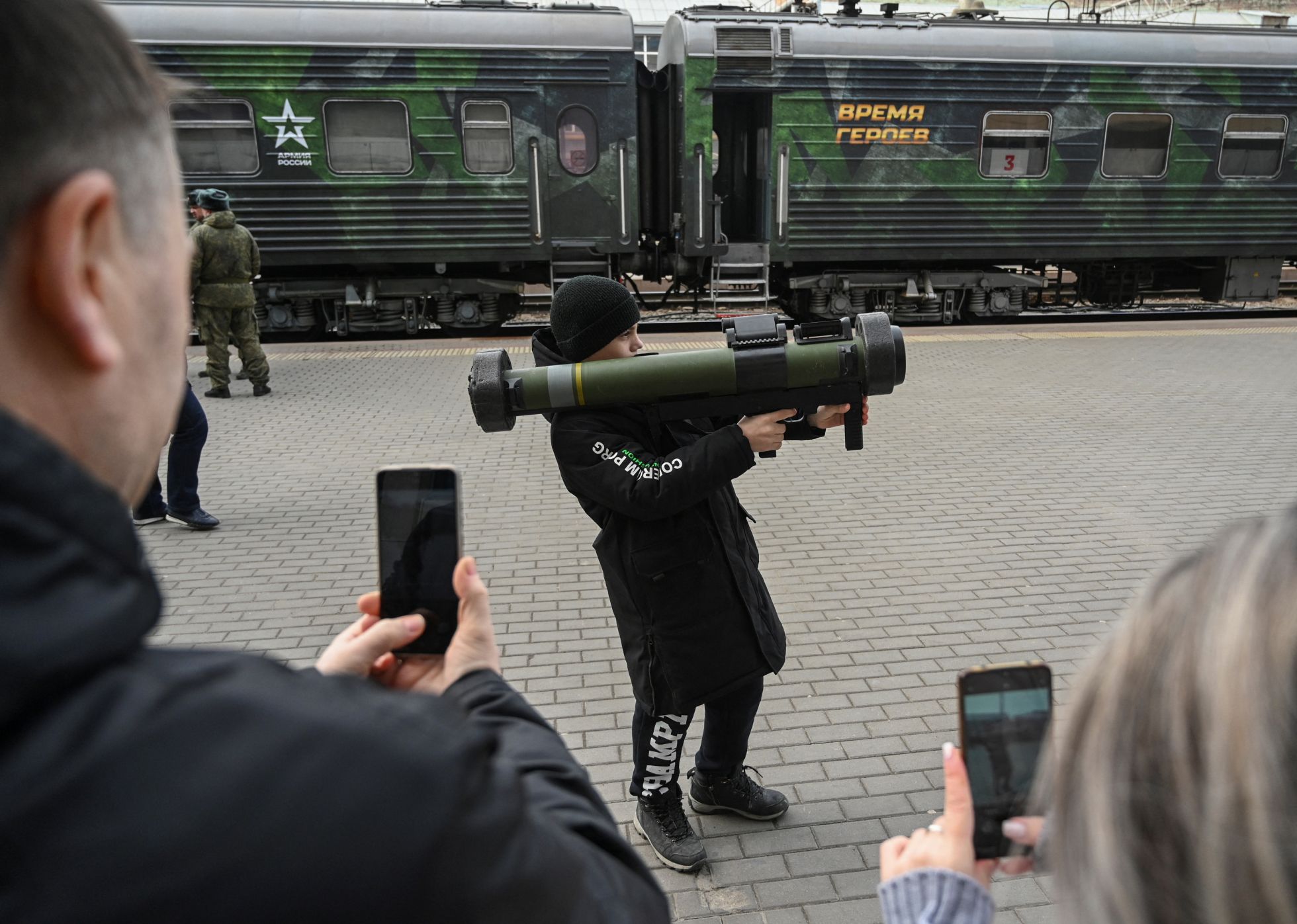 Минобороны РФ с 23 февраля по 8 мая 2024 года проводит «агитационно-пропагандистскую акцию», в рамках которой по городам России ездит поезд «Сила в правде». По замыслу организаторов, поезд проедет от Москвы до Владивостока и обратно, сделав остановки на 75 станциях. «В составе агитационного поезда тематический вагон „Этих дней не смолкнет слава“ с образцами вооружения и макетами боевой техники времен Великой Отечественной войны, а также вагон „Альянс обетованный“, экспозиция которого раскрывает преступные замыслы руководства Украины и насаждаемую им идеологию нацизма», — говорилось в распространенном Минобороны РФ пресс-релизе.