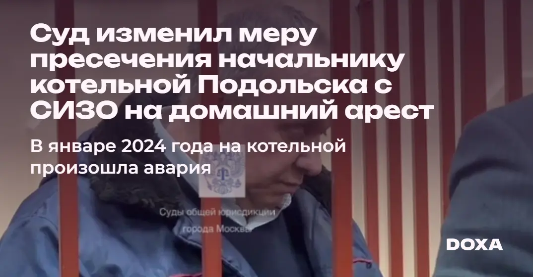 Суд изменил меру пресечения начальнику котельной Подольска с СИЗО на домашний арест
