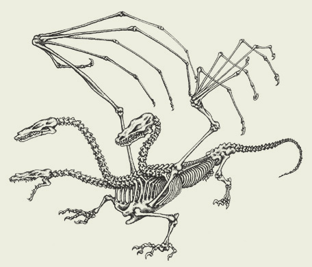Полный скелет, вид под углом 45°. Рисунок А. Н. Квашенко из книги «Теоретическая драконистика»