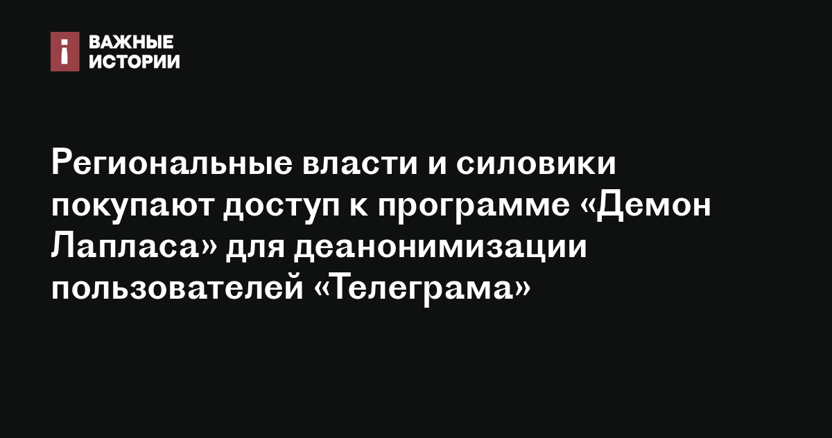 Региональные власти и силовики покупают доступ к программе «Демон Лапласа» для деанонимизации пользователей «Телеграма»