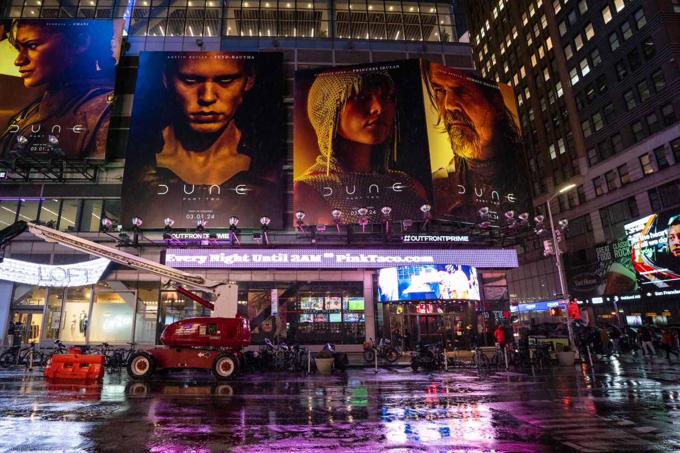 Обычно промокампания большой премьеры начинается за несколько месяцев до выхода фильма в прокат. «Дюну» начали продвигать еще в первой половине 2023 года — кинокомпания успела выпустить два трейлера фильма, но потом началась забастовка, которая продолжалась до ноября. Все это время исполнители главных ролей — Тимоти Шаламе, Зендея, Остин Батлер, Флоренс Пью, Дэйв Батиста, Леа Сейду, Хавьер Бардем, Ребекка Фергюсон — не могли участвовать в продвижении фильма (все они — члены бастовавшей Гильдии киноактеров США). После окончания страйка аудиторию пришлось готовить к премьере заново.