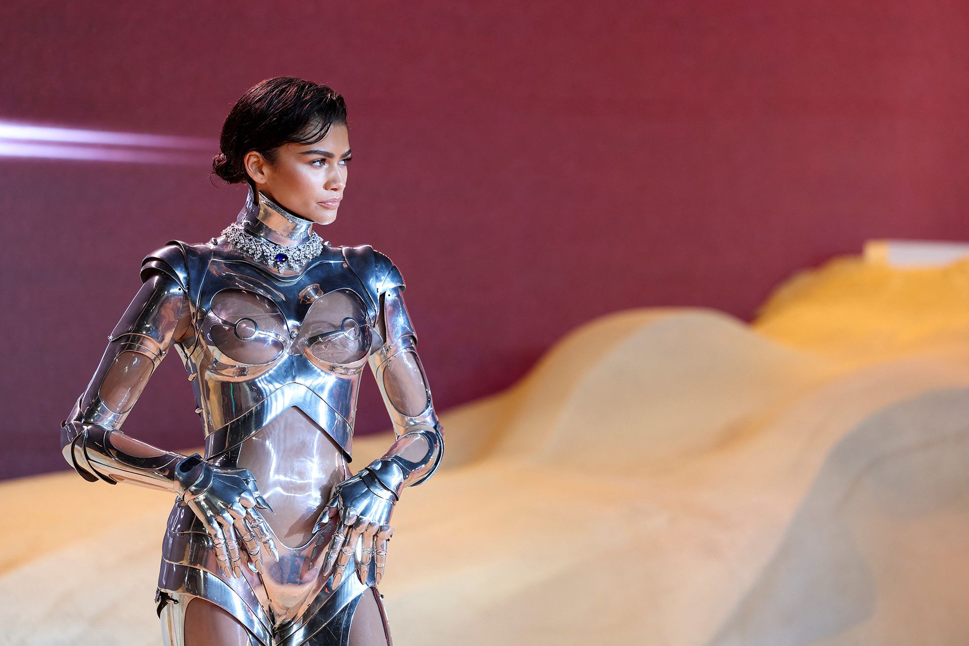 После окончания страйка к кампании все-таки присоединились актеры. Во время мирового промотура команда фильма посетила Париж, Лондон, Сеул, Мехико, Абу-Даби и Нью-Йорк — и каждый из этих показов запомнился в том числе благодаря неожиданным образам Зендеи, подобранным в соответствии с эстетикой «Дюны». Так, на премьеру в Лондоне актриса пришла в знаменитых серебряных доспехах «фембота» модного дома Mugler — впервые их показали на показе осенней коллекции в 1995 году.