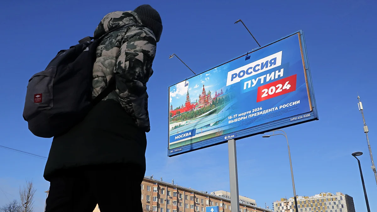 Билборд в Москве с призывом голосовать за Путина на выборах, 22 января 2024 года. Фото: Максим Шипенков / EPA-EFE