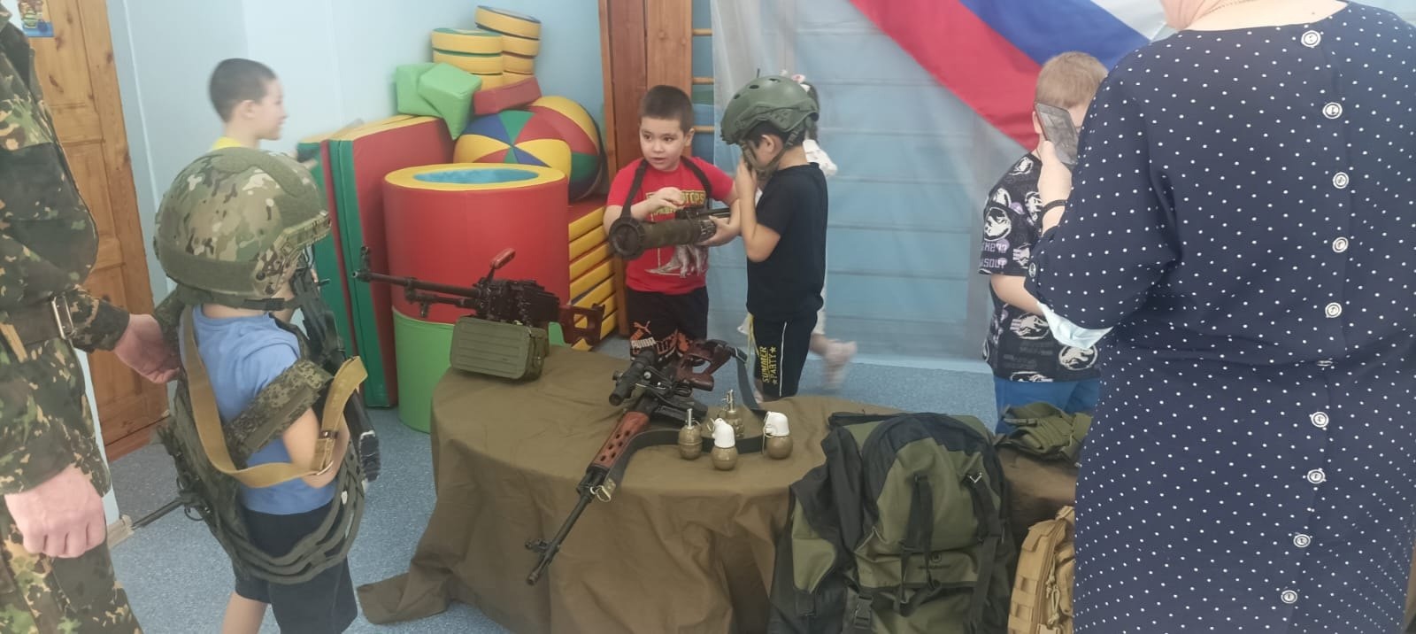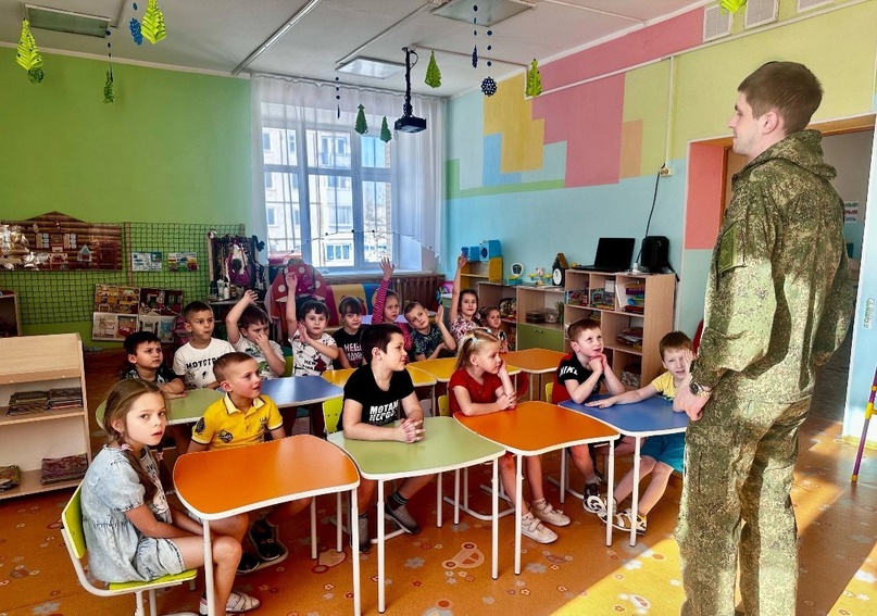 В детском саду "Улыбка" ЗАТО п. Солнечный (военный город в Красноярском крае, где располагаются ракетные комплексы "Сармат") побывал участник СВО, который поделился историями "о солдатских буднях, о службе, о подвигах наших воинов". Там же прошла акция "Поздравь защитника Отечества". Дошкольники делали открытки на газовых баллонах, танки из носков, готовили чайные мешочки со сборами сибирских трав и пекли пряники для военных.
