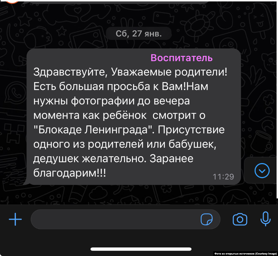 Анастасия, мама 4-летнего малыша из Новосибирска, вспоминает, что сначала ее насторожило, когда в общем чате группы воспитатели попросили сделать фотографию, как бабушки с внуками смотрят фильм о блокаде Ленинграда.