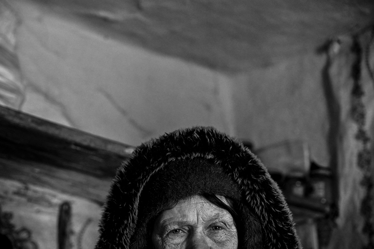 В доме всего две комнаты — кухня-прихожая и зал. Зябко. Вера в теплом свитере, меховой шапочке, дубленке и капюшоне, смотрит на нас с опаской, слегка кивает и молчит. Мы здороваемся, протягиваем тортик и шоколадку. Вера забирает сладости и уносит в комнату. Соседка Татьяна наклоняется к печке — вроде топлена, но давно прогорела, — подкидывает дров. Пытаемся поговорить с Верой, но она только кивает.