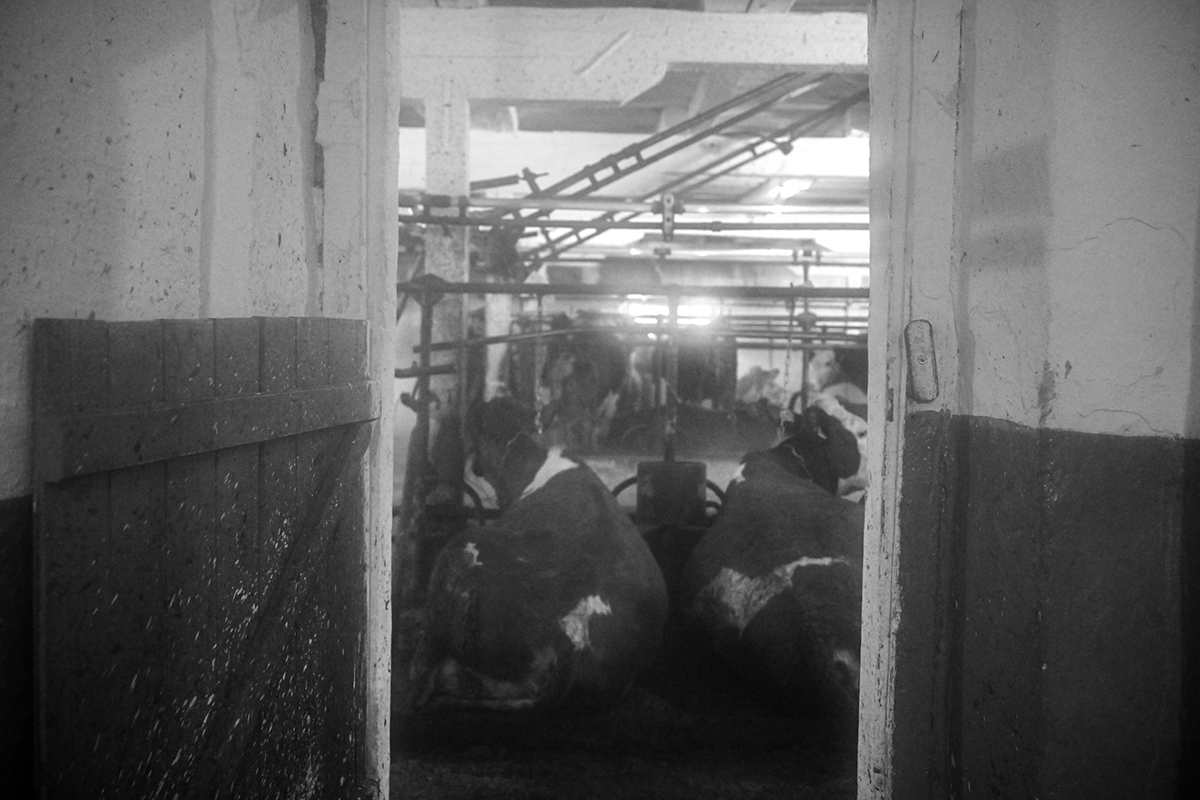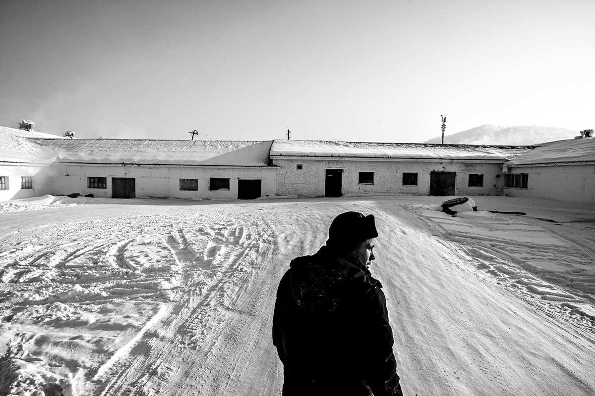 Ферма от Вериного дома в пяти минутах ходьбы. Технолог Юлия показывает небольшую каморку, где Вера обычно спит. Там тепло, вкусно пахнет — рядом стойла с маленькими телятами — лучшее место, когда одиноко и холодно. Видно, что Юлия очень переживает: это она сделала то видео, где Вера сидит на корточках у печки и ест кусок хлеба.
