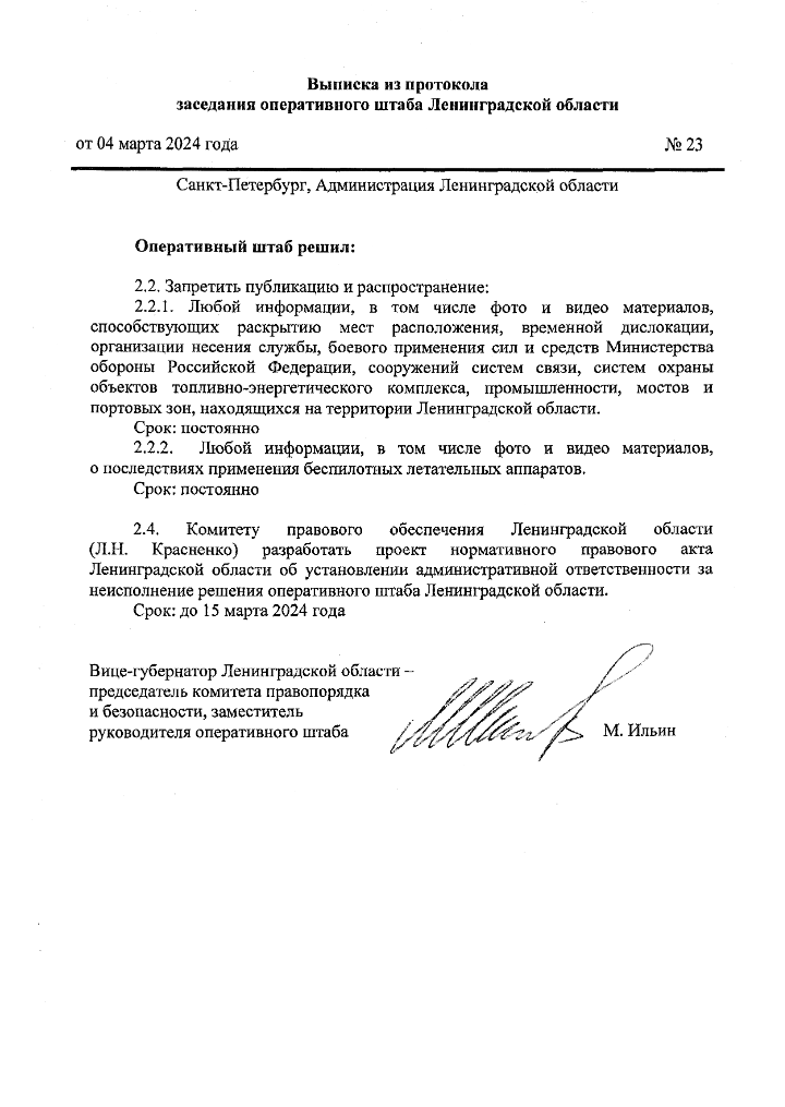 Решение запретить публиковать и распространять информацию о последствиях атак дронов приняли после того, как в ночь на 2 марта Петербург и Ленинградскую область атаковали беспилотники. В результате атаки в пятиэтажном жилом доме в Петербурге произошел взрыв. По данным СМИ, целью атаки стали оборонный завод и нефтебаза. Кроме того, один из сбитых дронов нашли на территории «Петербургского нефтяного терминала».