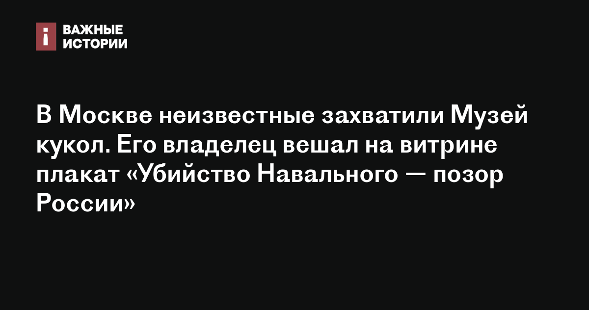 В Москве неизвестные захватили Музей кукол. Его владелец вешал на витрине плакат «Убийство Навального — позор России»
