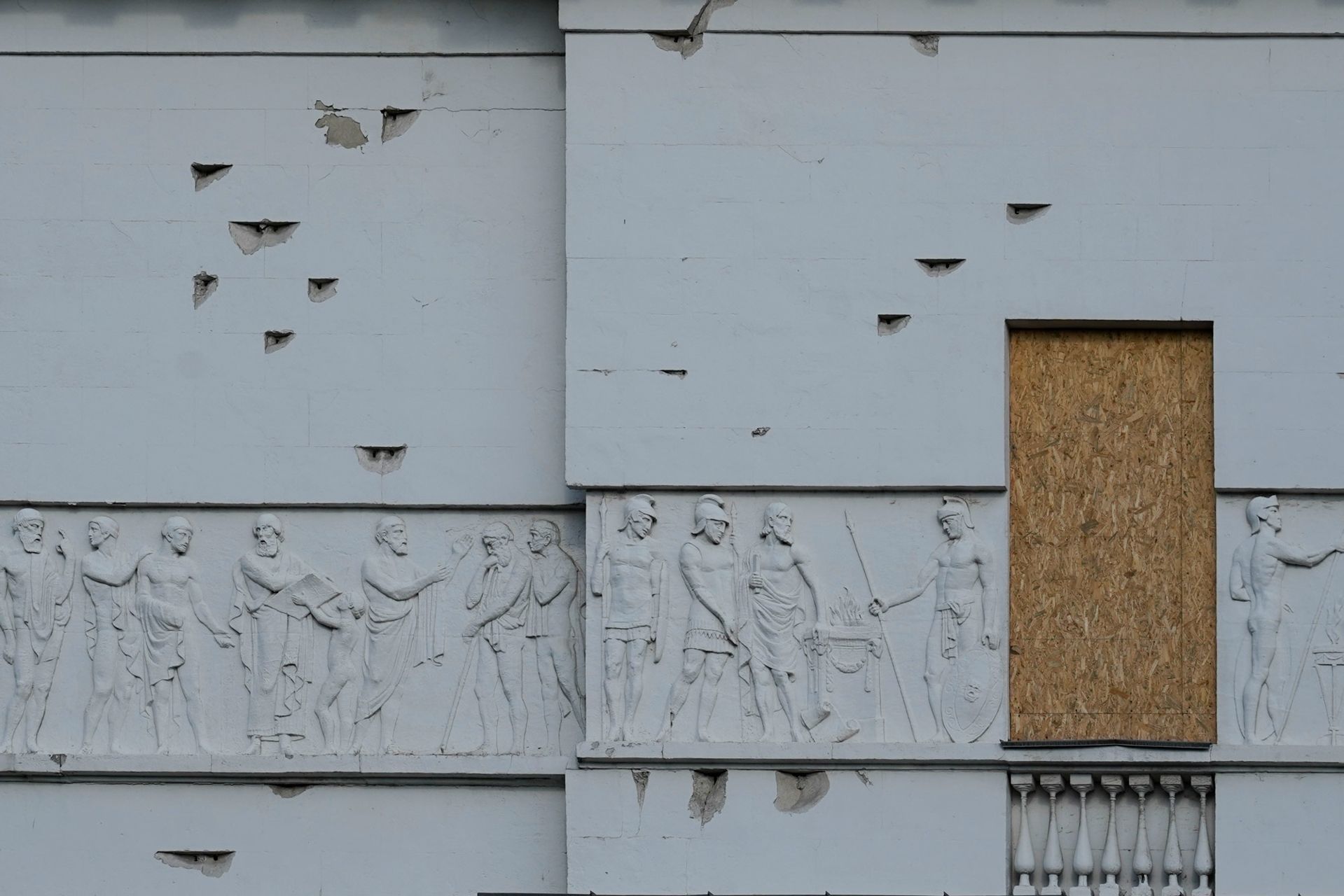 31 декабря 2022-го взрывная волна выбила стекла во Дворце искусств «Украина». Его построили в 1970 году по проекту архитектора Евгении Маринченко, а также ее учеников Петра Жилицкого и Ильи Вайнера. Дворец искусств находится рядом с одноименной станцией метро. В 1970–80-е в здании проходили съезды компартии и другие государственные торжества; после распада СССР там устраивали концерты. В день атаки во дворце планировали провести несколько детских новогодних представлений.