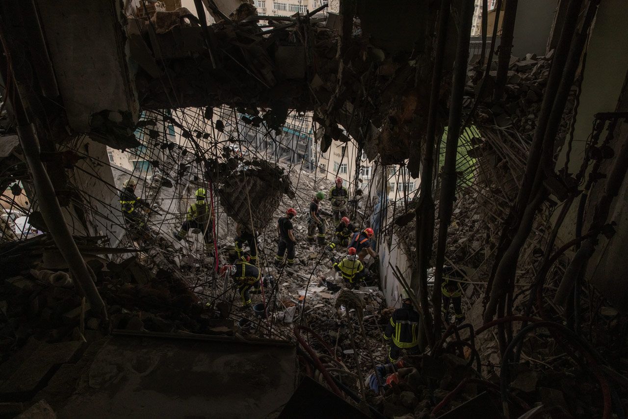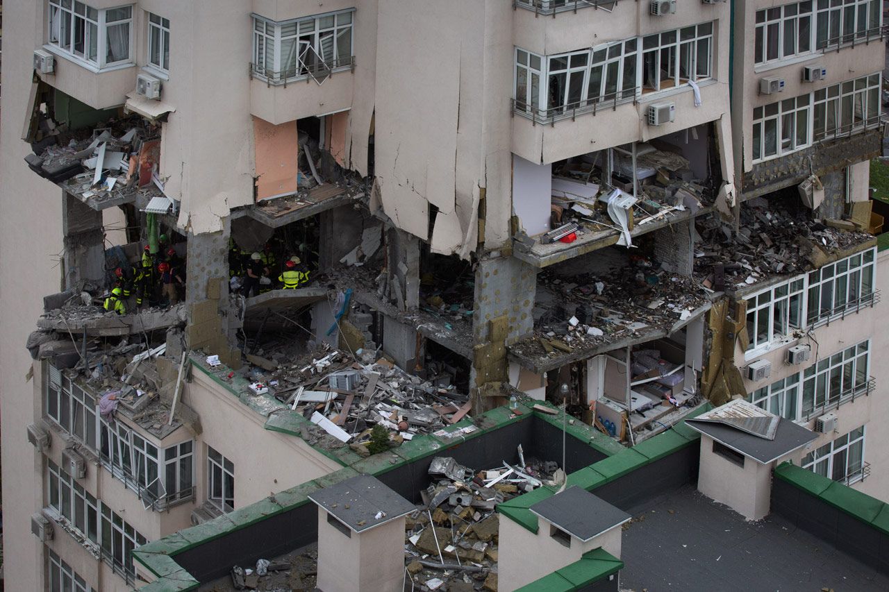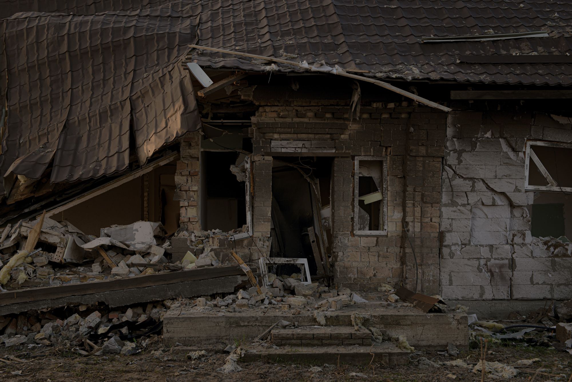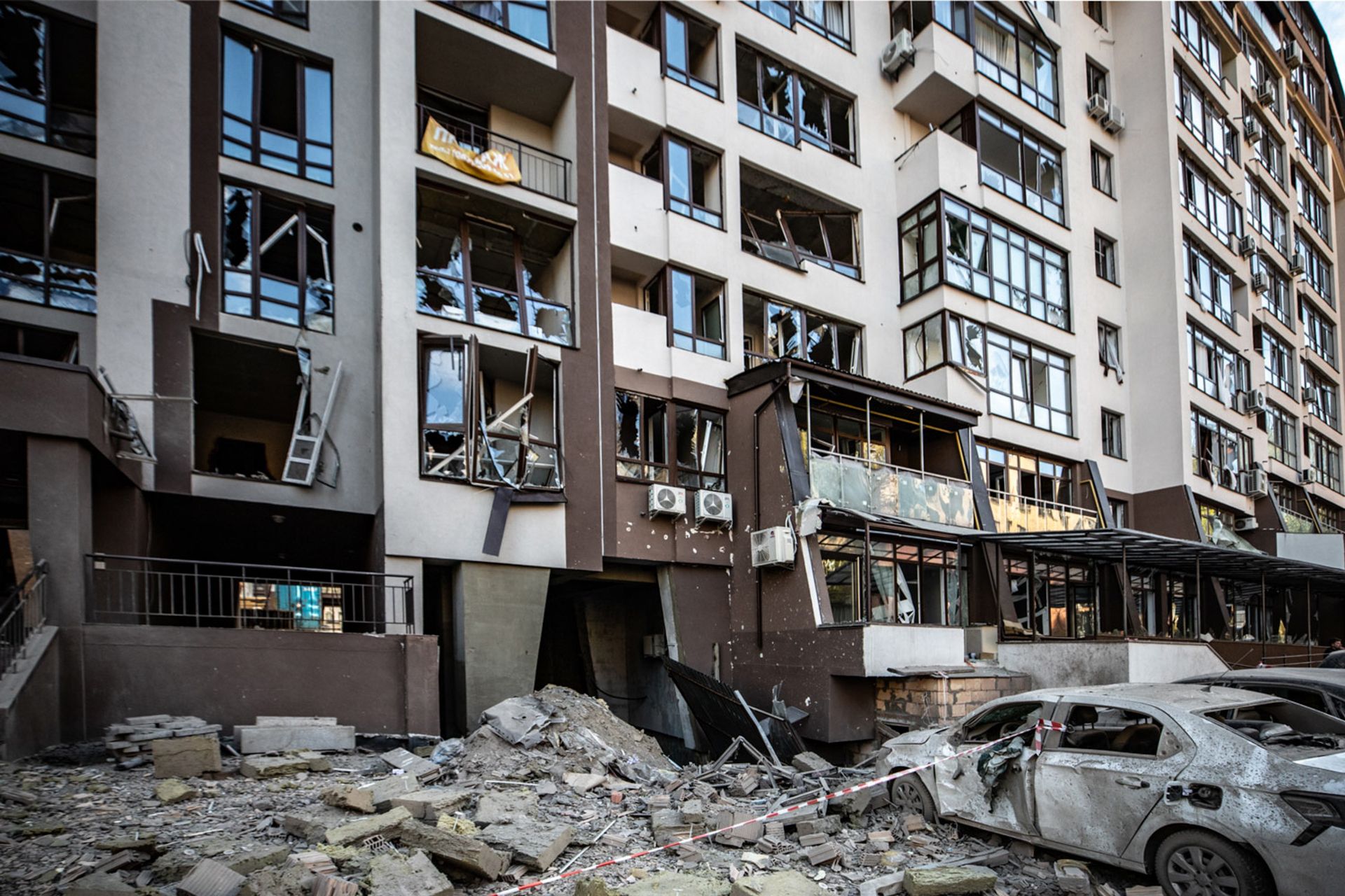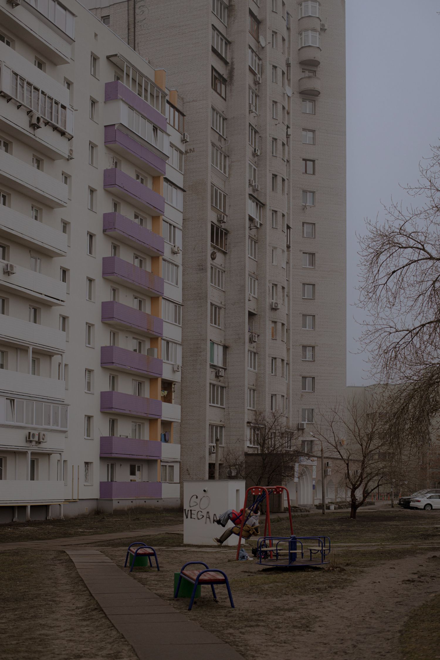 Жилую 25-этажку неподалеку от международного аэропорта «Киев-Жуляны» сдали в эксплуатацию в 2015 году. Во время полномасштабного вторжения она была повреждена одной из первых. Утром 26 февраля 2022-го ракета разрушила шесть угловых квартир на четырех верхних этажах (Россия утверждает, что это была ракета ПВО Украины, Украина это отрицает). Как пишет издание «Новини», основной удар пришелся по детским комнатам, которые, согласно планировке, располагались в этой части здания. Обошлось без жертв — многие жильцы к тому времени уже эвакуировались из города. Те, кто остался, жили в коридорах, соблюдая правило двух стен.