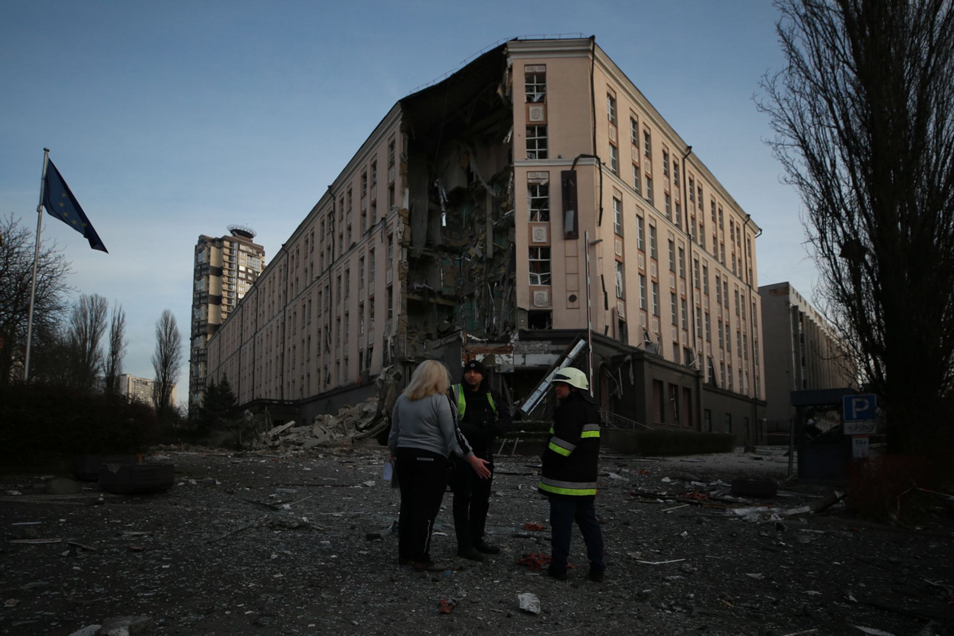 31 декабря 2022 года, пр-т Академика Глушкова, 2. На территории кампуса Киевского национального университета имени Тараса Шевченко упали обломки российской ракеты. Повреждения получили 13 зданий, больше всего пострадали университетский спортивный комплекс и факультет радиофизики, электроники и компьютерных систем