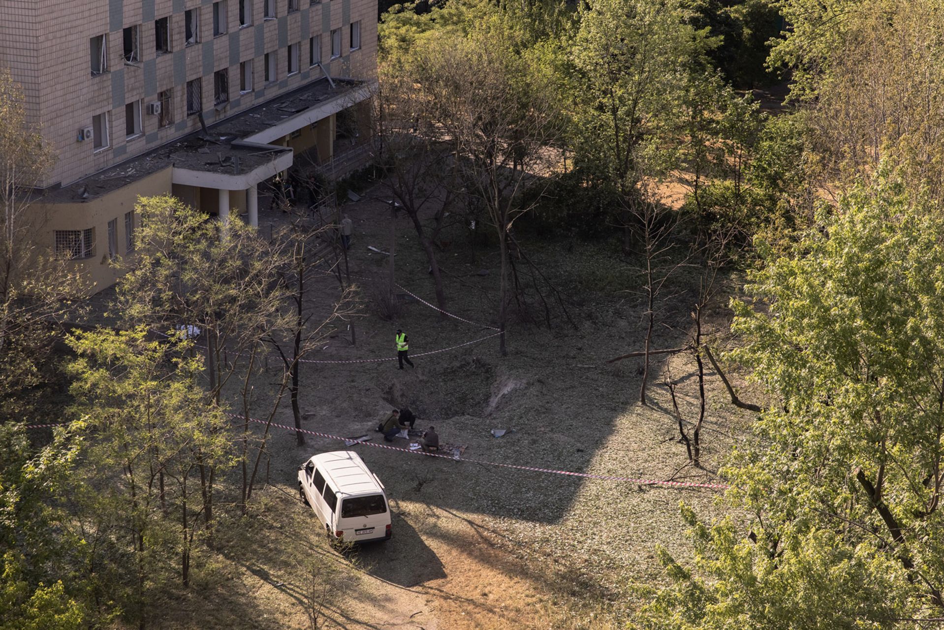28 мая 2023 года, пр-т Василия Лобановского, 115. Офисное здание было повреждено в результате атаки беспилотников. Всего при ударе по нескольким районам города пострадали два человека, один человек погиб