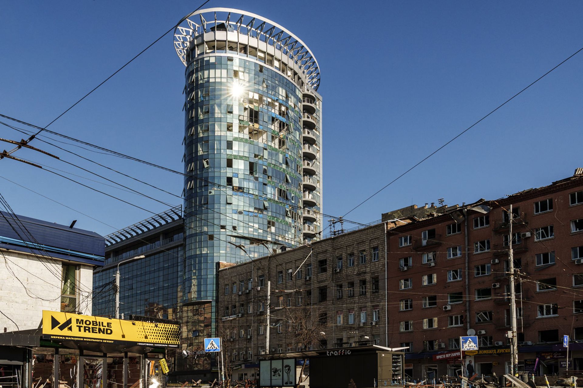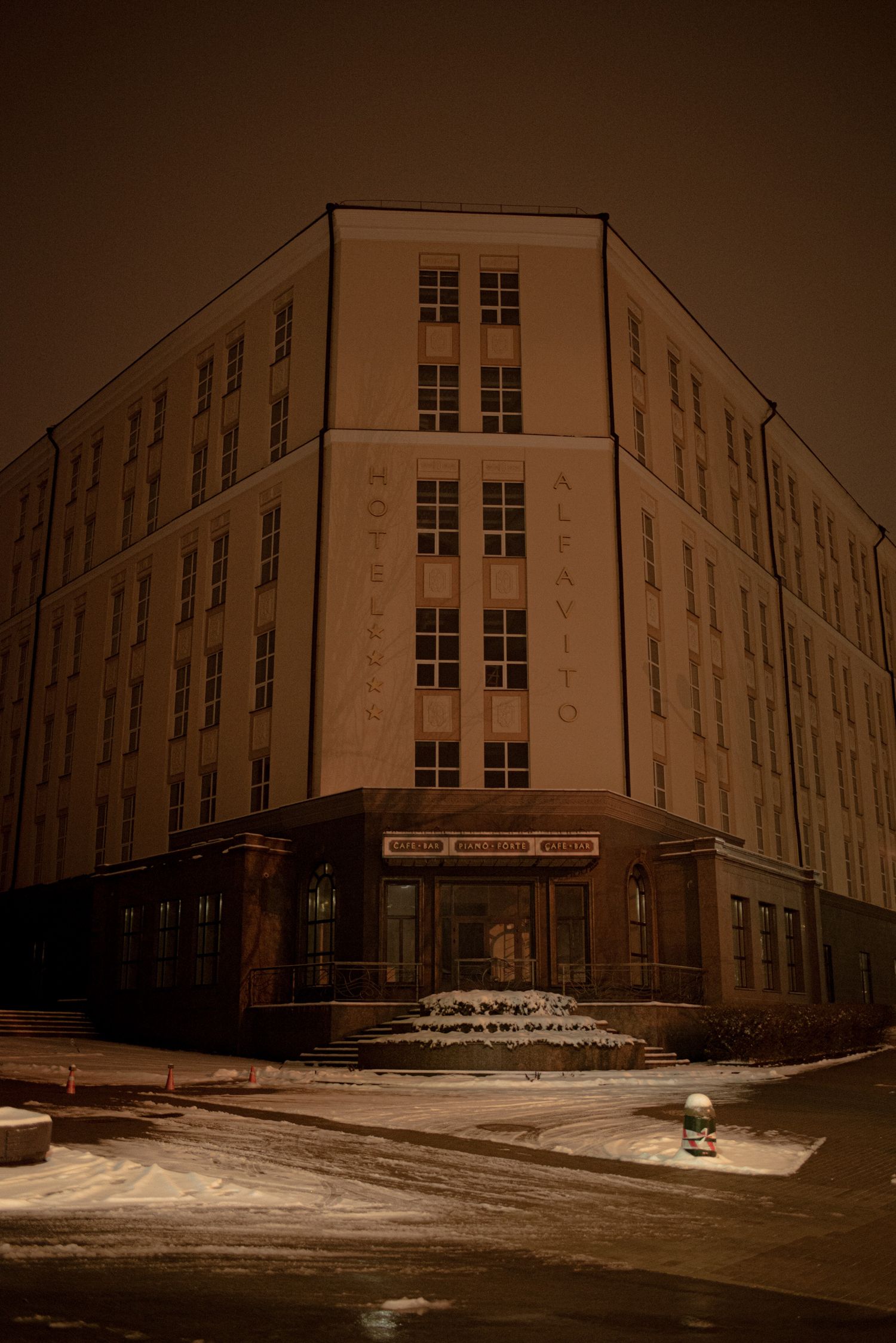 В тот же день российский снаряд разрушил пять этажей «Алфавито» — отеля, открытого в 2012 году перед началом чемпионата Европы по футболу, проходившего в Украине. Новая гостиница расположена в бывшем общежитии завода «Радар», построенном в 1930-е.