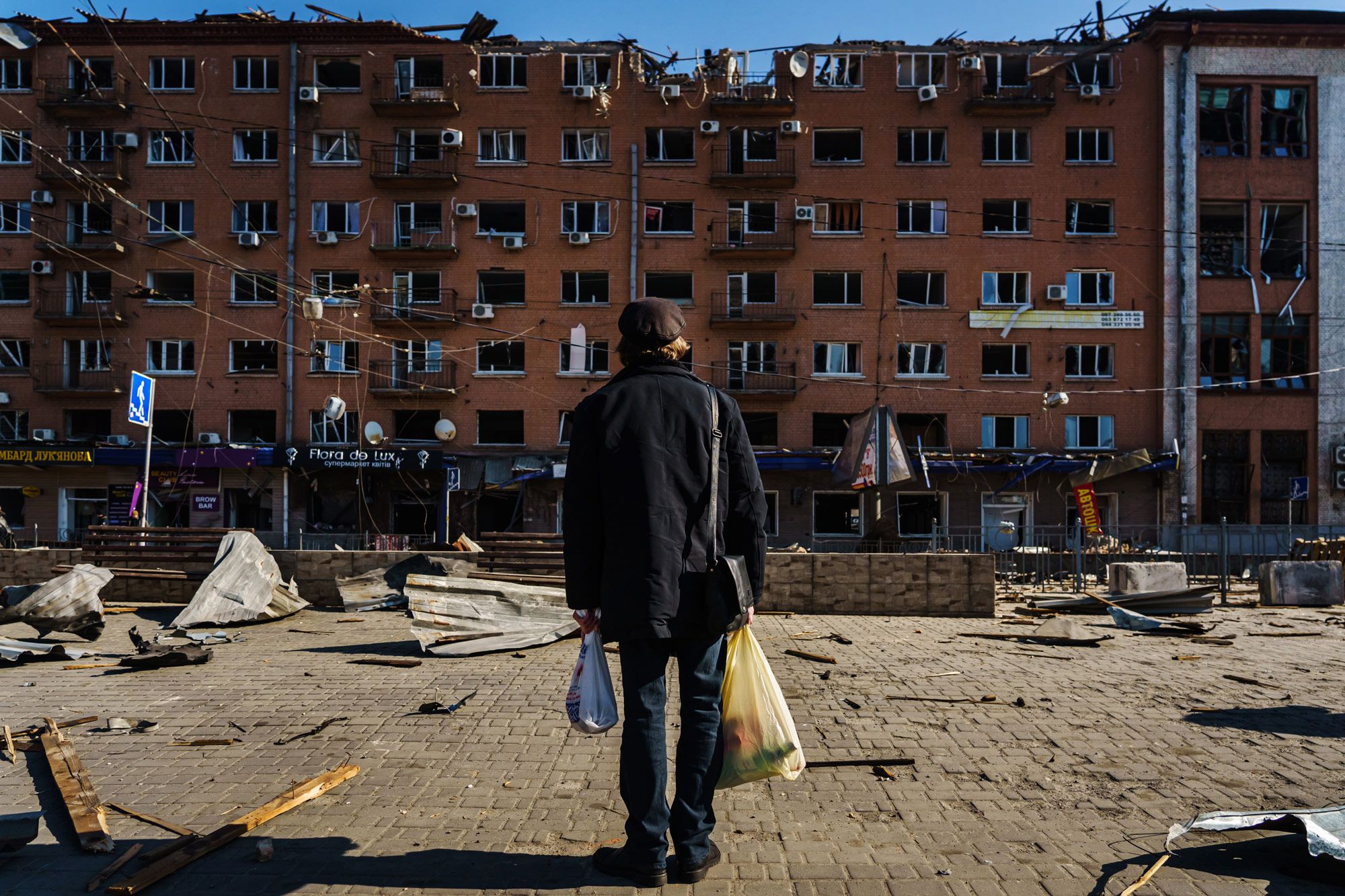 С начала войны в городе погибли более 200 мирных жителей, в том числе шесть детей. Были ранены сотни. Все это время Минобороны РФ утверждает, что с помощью «высокоточного оружия» российские военные бьют «по предприятиям ВПК». В реальности обычно страдают именно гражданские объекты. 24 февраля 2024-го мэр города Виталий Кличко сообщил, что за два года войны повреждены более 900 зданий: около 800 жилых домов, 122 учебных заведения, 18 учреждений здравоохранения, 17 — социальной сферы.