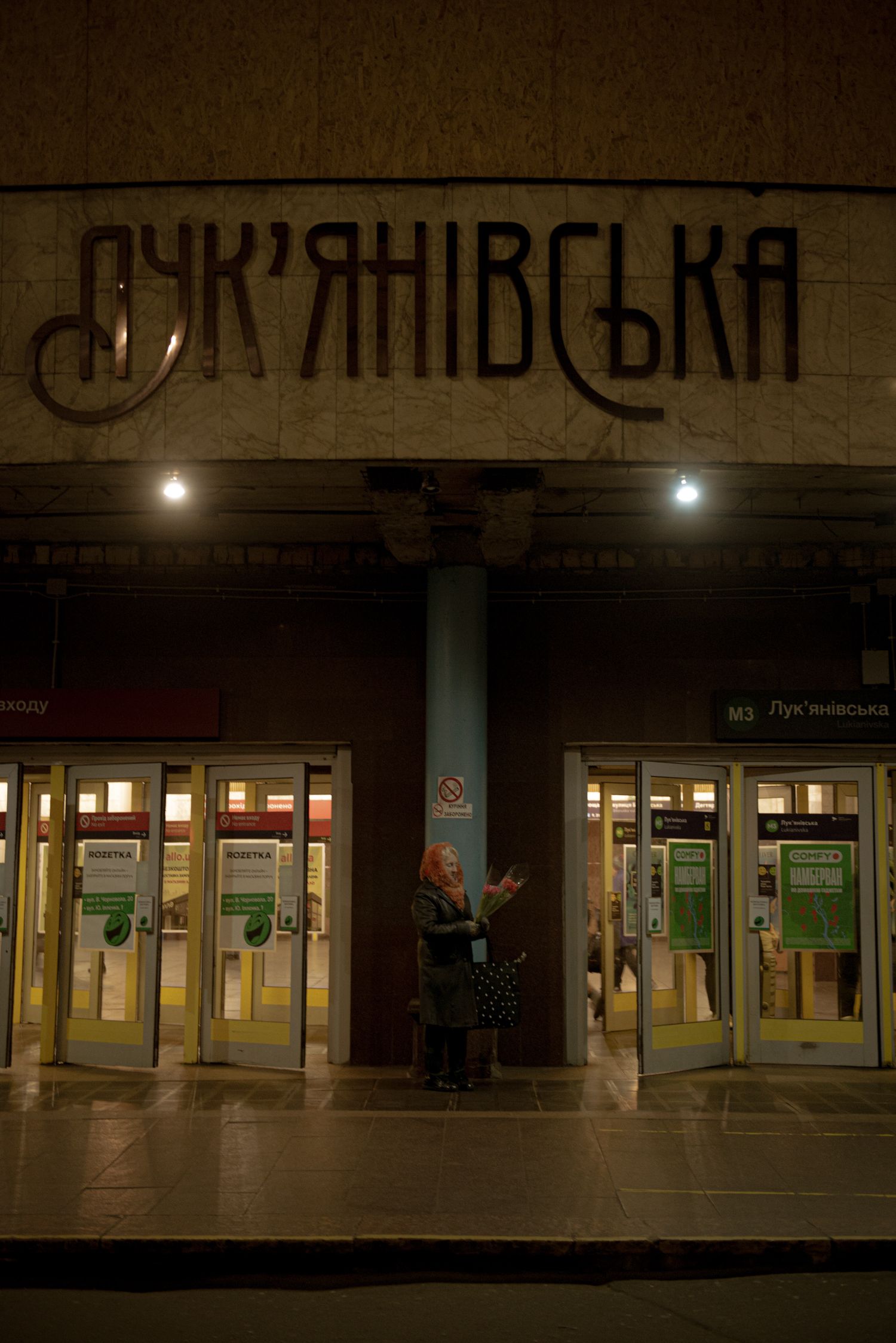 Жительница Киева, которая укрывалась на станции метро «Лукьяновская» во время обстрелов 29 декабря 2023 года