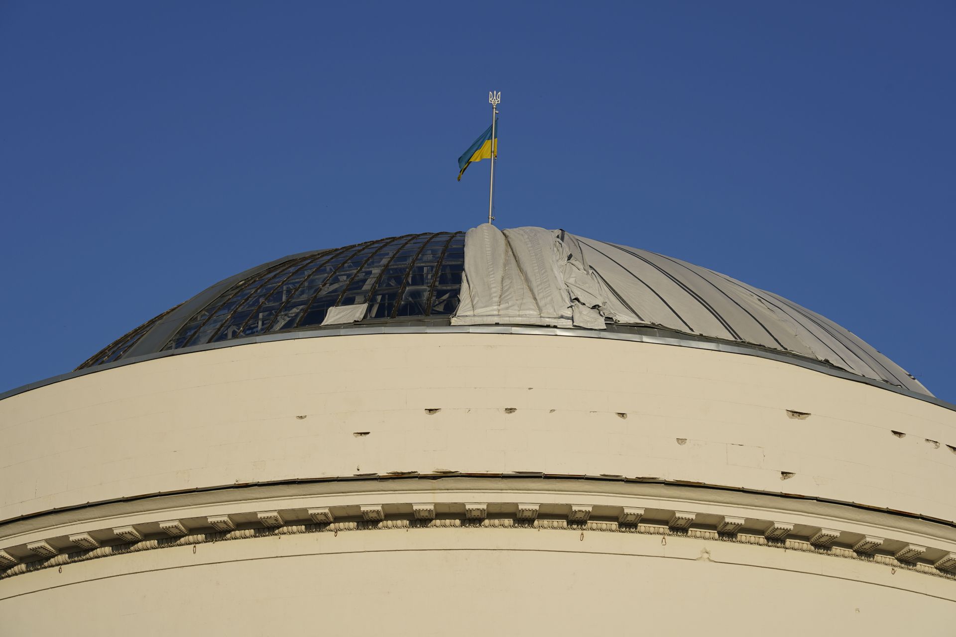 10 октября 2022 года, ул. Владимирская, 57. Из-за ракетного обстрела поврежден купол Киевского городского дома учителя — памятника культурного наследия Украины национального значения