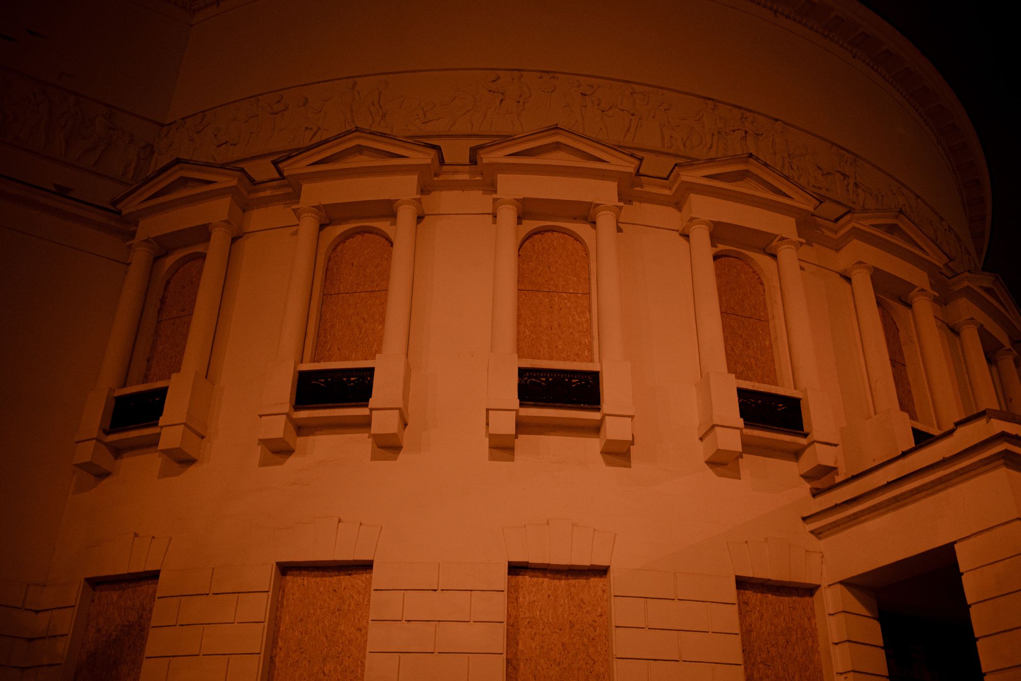 10 октября 2022 года, ул. Богдана Хмельницкого, 15. В результате ракетного удара были выбиты окна в Национальном научно-природоведческом музее НАН Украины, расположенном в здании XIX века. Необходимо было оперативно закрыть щитами оконные проемы, чтобы сохранить экспонаты. На помощь музею пришли Минкультуры, благотворительный фонд семьи Довгих, а также сотни людей из разных стран мира, сделавших пожертвования. Руководство музея решило, что фанерные щиты останутся на окнах даже после восстановления остекления — до тех пор, пока не закончится война