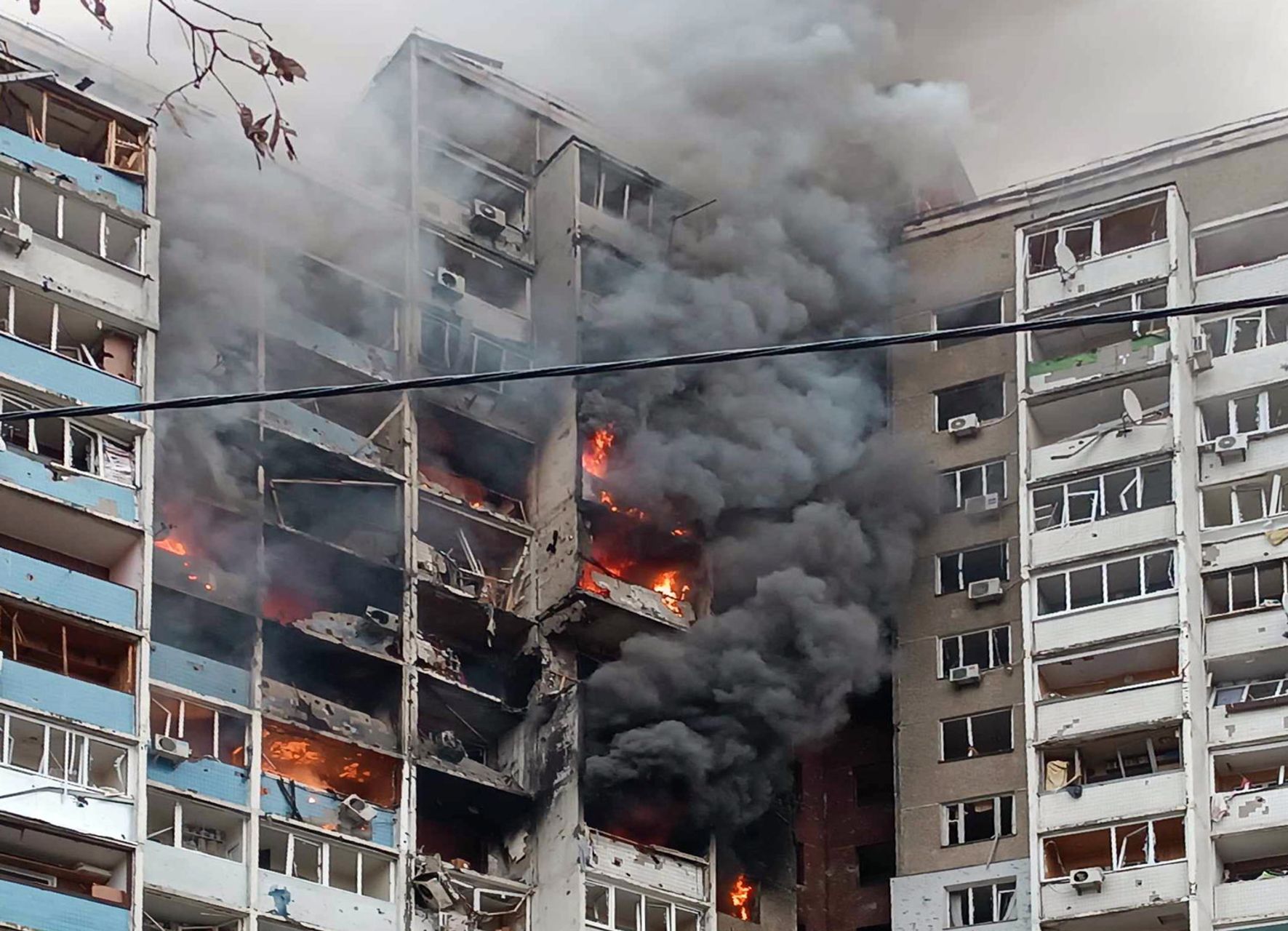 23 января 2024 года, ул. Ивана Дзюбы, 6. Российские войска выпустили по Киеву более 40 ракет, половину удалось сбить силами ПВО. Из-за ракетного удара возникли несколько пожаров, в том числе в жилом доме