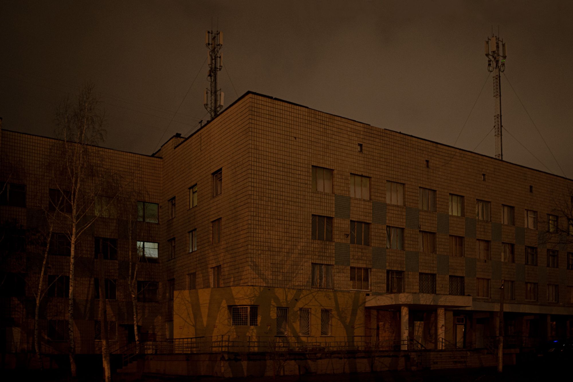 16 марта 2022 года, ул. Городская, 1а. Ракета повредила помещение и технику Украинского специализированного диспансера радиационной защиты