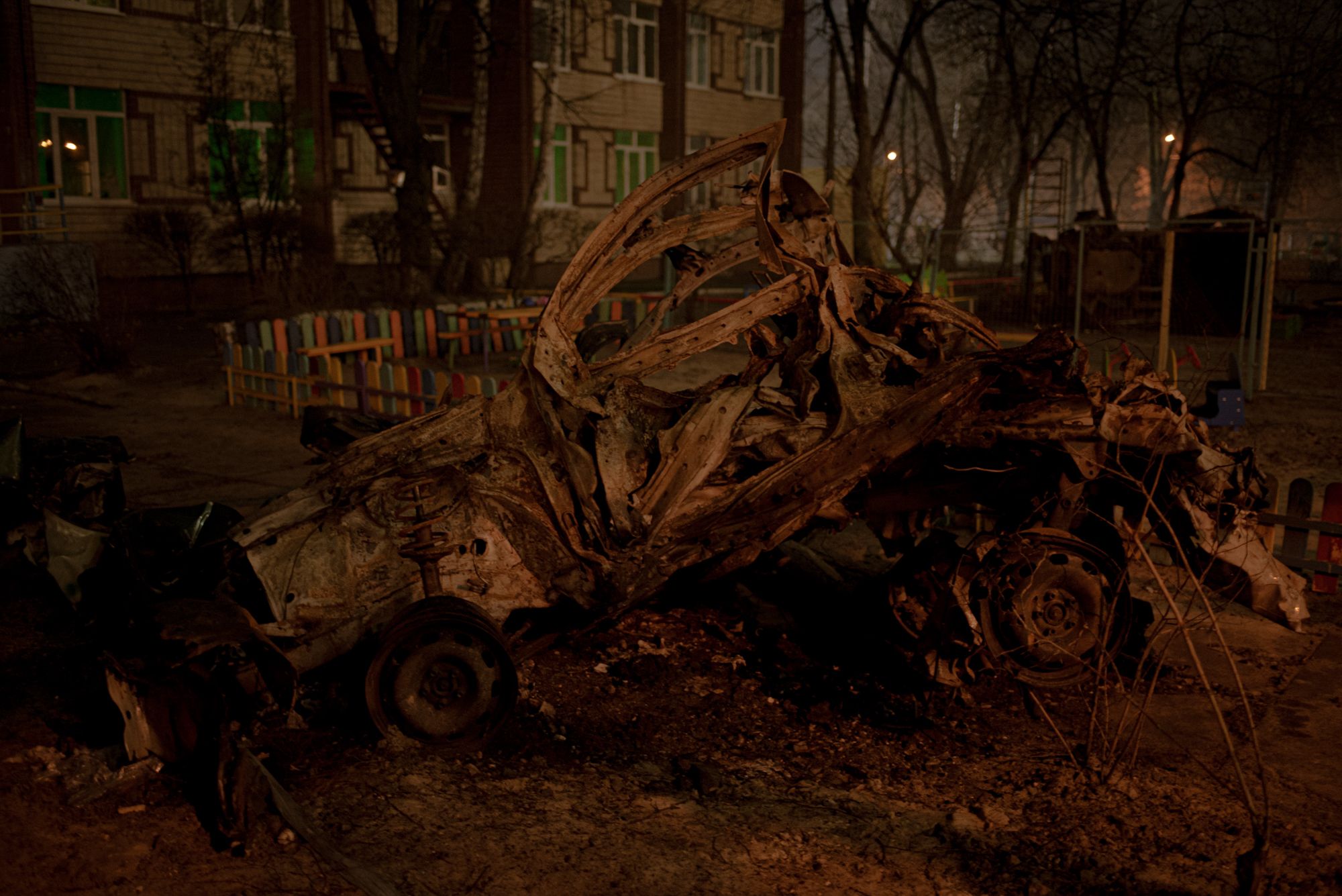 16 марта 2022 года, ул. Николая Лаврухина, 7А. В результате падения ракеты во дворе жилого дома в здании были выбиты все окна. Сгорели припаркованные возле дома автомобили