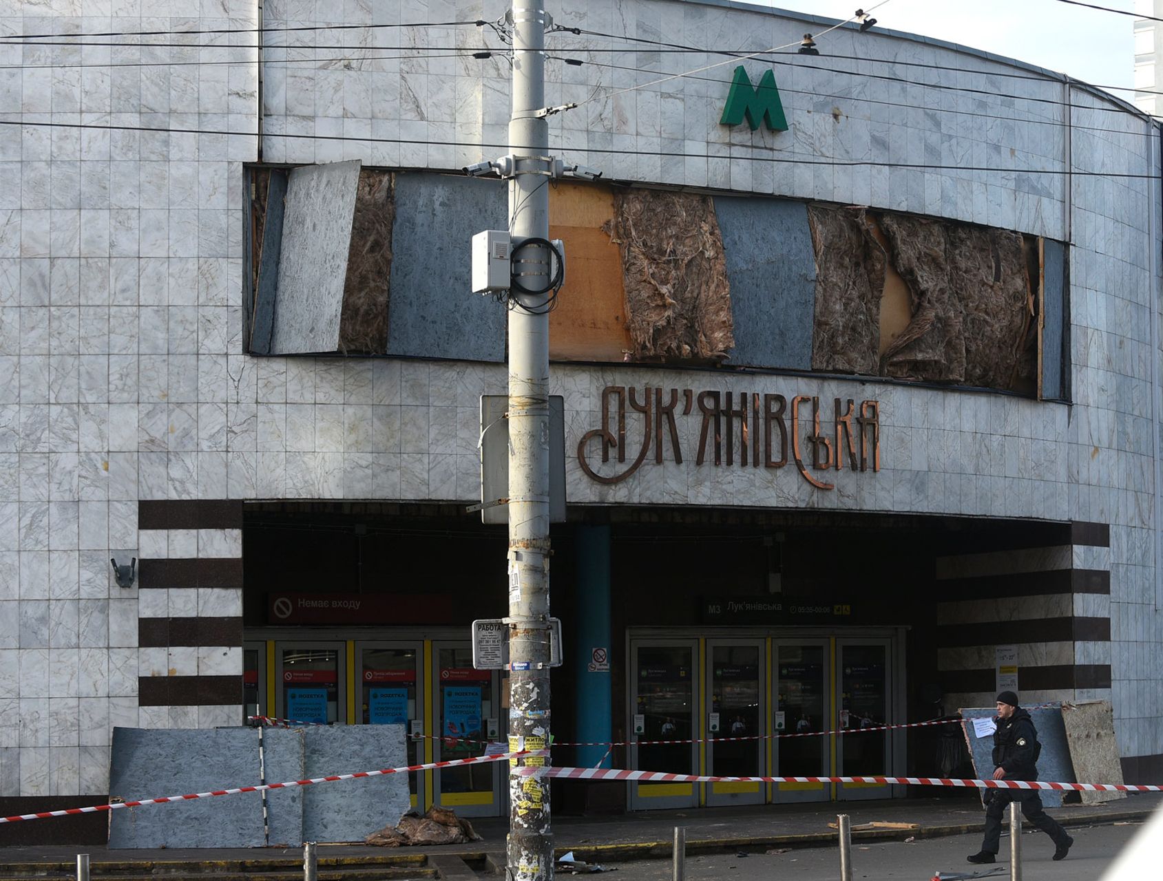 15 марта 2022 года и 29 декабря 2023 года. Метро «Лукьяновская». Станция Киевского метрополитена расположена недалеко от завода «Артем», по которому неоднократно наносили удары войска РФ. В результате этих ударов наземный вестибюль «Лукьяновской» повреждался несколько раз