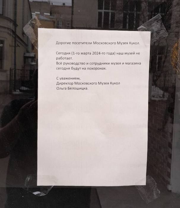1 марта — в день похорон политика Алексея Навального на Борисовском кладбище в Москве — на дверях музея появилось объявление о том, что он не работает, поскольку все руководство и сотрудники будут на похоронах. В объявлении не уточнялось, на чьи похороны ушла команда музея.