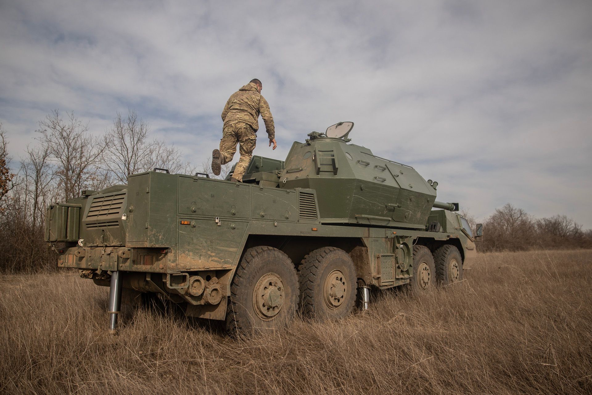 Roman Chop / AP / Scanpix / LETA Бойцы ВСУ готовят чешскую 152-мм самоходную пушку-гаубицу «Дана» к атаке на российские позицииRoman Chop / Global Images Ukraine / Getty Images Бахмут (фактически разрушенный в ходе многомесячного штурма, самого кровопролитного с начала полномасштабной войны) был захвачен российскими войсками почти год назад. Тем не менее бои вокруг города продолжаются до сих порRoman Chop / Global Images Ukraine / Getty Images Украина планировала закупить гаубицу «Дана» еще в 2018 году, но в итоге они поступили в страну только в апреле 2022-го, уже после полномасштабного вторжения России. Предположительно, речь шла о 26 единицах (вместо 66, о которых шли переговоры изначально). Сообщалось, что первое использование гаубицы в ходе боев было зафиксировано в конце 2023 годаRoman Chop / AP / Scanpix / LETA Дальность поражения модифицированной «Даны» достигает 25,5 километра
