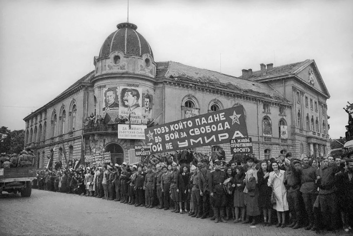 В годы же Второй мировой Болгария воздержалась от соучастия в войне против СССР, и вплоть до осени 1944 года в Софии работало советское посольство. Однако царь Борис III поддался уговорам Берлина и в декабре 1941 года объявил войну Великобритании и США, которые спустя почти два года стали превращать столицу Болгарии в руины воздушными бомбардировками. В 1944 году, после капитуляции Румынии, Красная армия вышла к границам Болгарии по пятам немцев. СССР объявил ультиматум правительству, а вслед за ним — войну. Но воевать не пришлось. Красноармейцев встречали цветами.