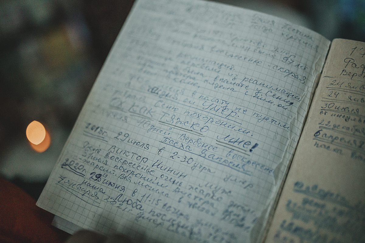 «Он на меня иногда так матом ругается, — шепотом говорит она, опасаясь, что сын услышит и рассердится. — Меня сборник акафистов спасает. А вот тут в тетрадочке я записываю все самое важное. Когда по кому читать. Вот, видите», — она перечисляет имена святых, молитв, доходит до странички с датой смерти старшего сына и начинает плакать над своей трогательной тетрадкой, в которой имена родных и дорогие сердцу события переплелись с Богородицей. Лидия Петровна утирает глаза и неожиданно говорит: «Мне в конце июня 89 лет. Хотелось бы еще пожить. Жизнь все-таки сейчас хорошая, комфортная. Пенсия маленькая, но мне на все хватает. Девочки вот вкусненькое принесут, мне надолго хватает. Помоги мне, Господи, дожить».