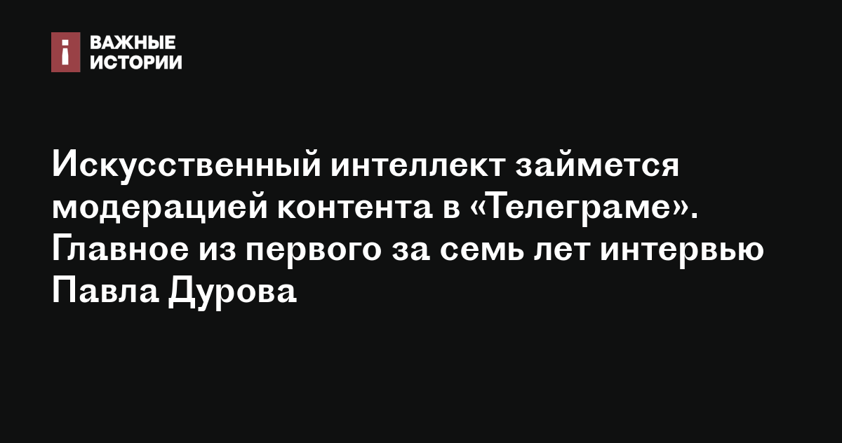 Искусственный интеллект займется модерацией контента в «Телеграме». Главное из первого за семь лет интервью Павла Дурова