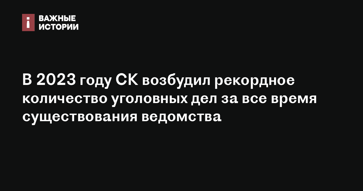Следственный комитет возбудил за 2023 год 159,4 тыс. уголовных дел, что стало рекордом как минимум с 2011 года. Данные были опубликованы в государственной статистической системе ЕМИСС, внимание на них обратило издание «Вёрстка».